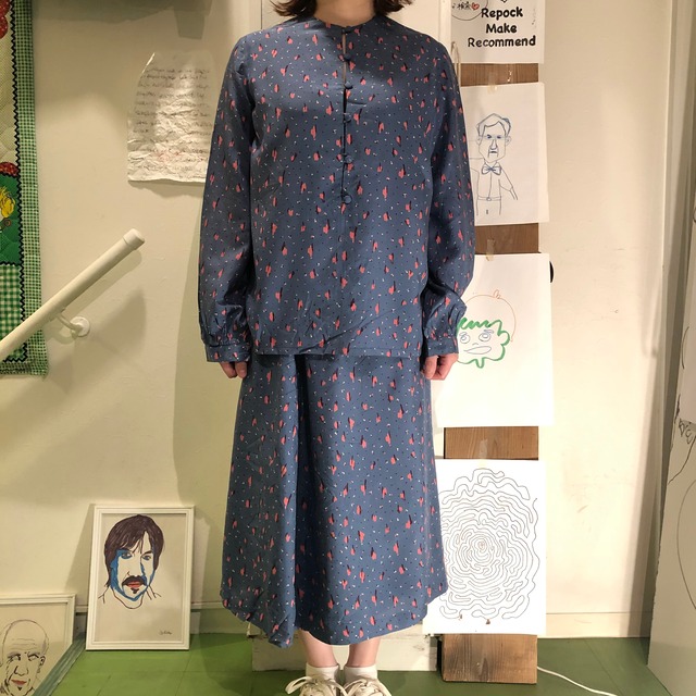 <コメント> チャイナデザインなトップスにプリーツスカートな総柄のセットアップ♡ ポリエステルの軽やかな素材感。 セットアップはもちろん単体使いでも着回せそうな雰囲気です♪♪ <素材> ポリエステル <平置き実寸サイズ> トップス 肩幅 40cm 袖丈 25cm 身幅 51cm 着丈 74cm スカート ウエスト幅 34cm'ゴム入り) 総丈 75cm <表記サイズ> 10 <生産国> USA <年代> 80s- <コンディション> 特に目立ったダメージ等無し 古着の性質上、特有の風合いや若干の汚れ、糸のほつれ、キズ、リペア跡などのある商品もございます。古着という事をご理解して頂いた上でのご購入を前提とさせて頂いておりますので、基本的には返品、交換はお受け致しかねます。誠に申し訳ございませんが、ご理解頂きます様宜しくお願い致します。 万が一商品に記載の無い大きな不備等があった場合、ご注文とは異なる商品が届いた場合は、大変お手数ですが、直接店舗の方までご連絡下さい。(093-521-1980) ご相談の上、返品、交換等の手続きをさせて頂きます。その際の送料や手数料は当店でご負担させて頂きます。 店頭でも販売しておりますので、ご注文からご確認までタイムラグが生じ、その間売り切れる場合もございます。その際は直接お客様にご連絡させて頂きお振込みにてご返金させて頂きますので、予めご了承頂きます様宜しくお願い致します。
