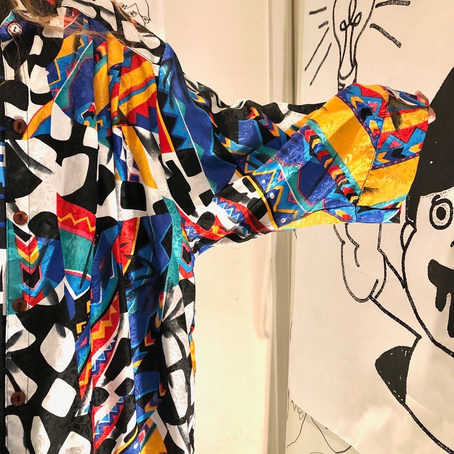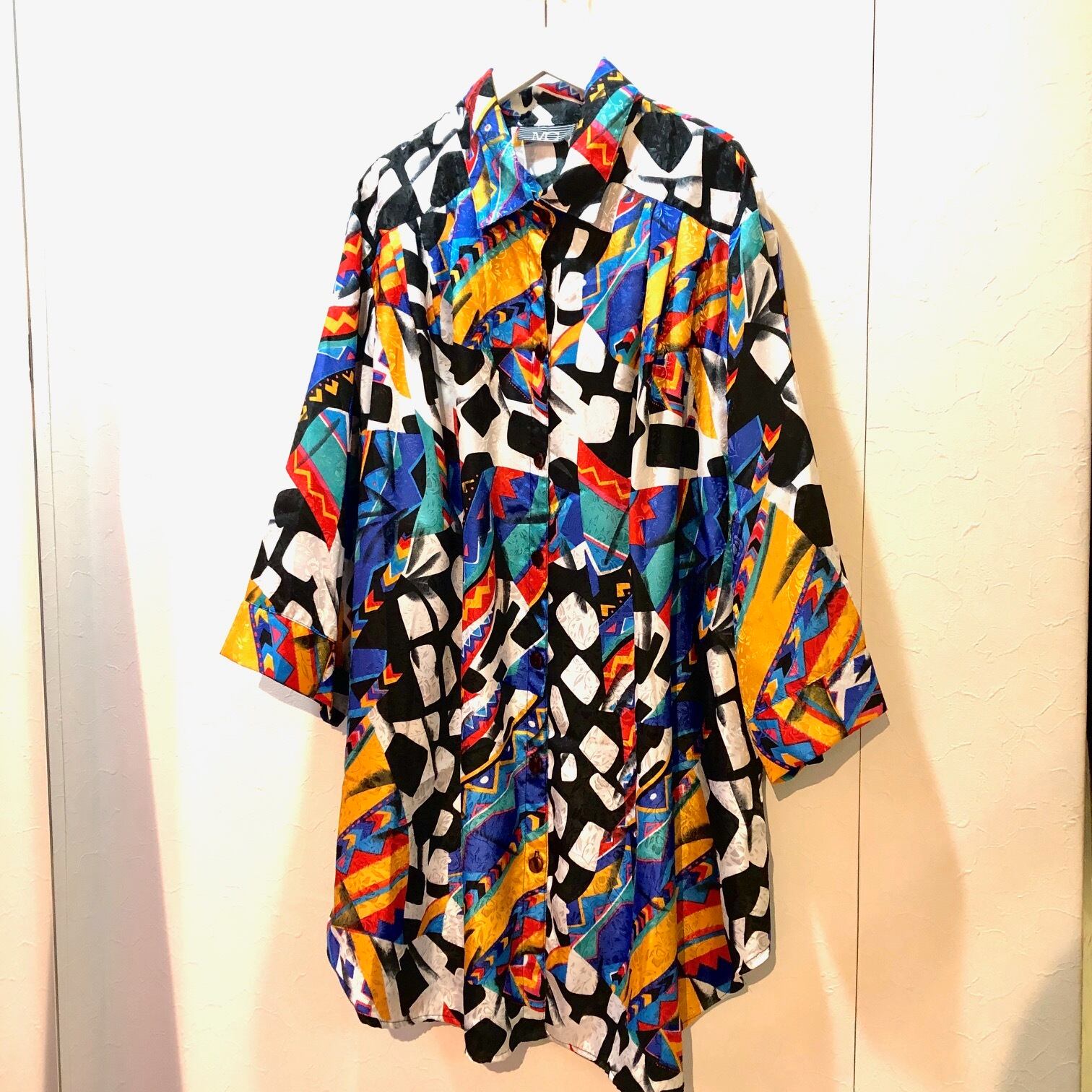80s- カラフルな総柄 サテンシャツ