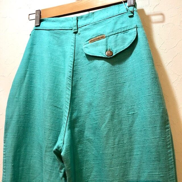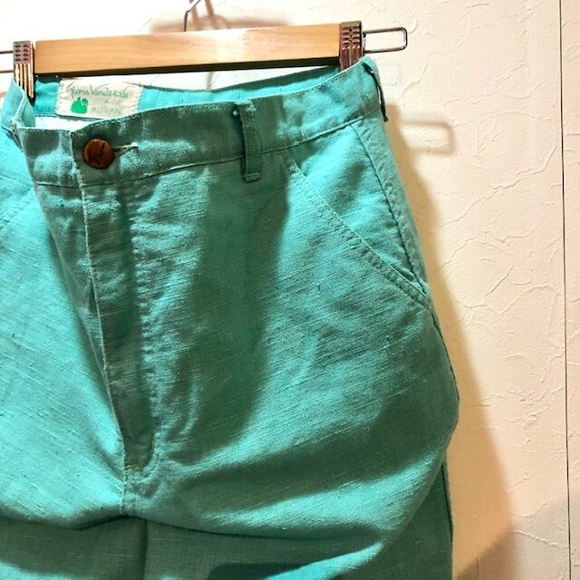ミントグリーンなナイスカラーに程よく効いたフレアなシルエットが◎な、風合いの良いコットン×リネン パンツ♡