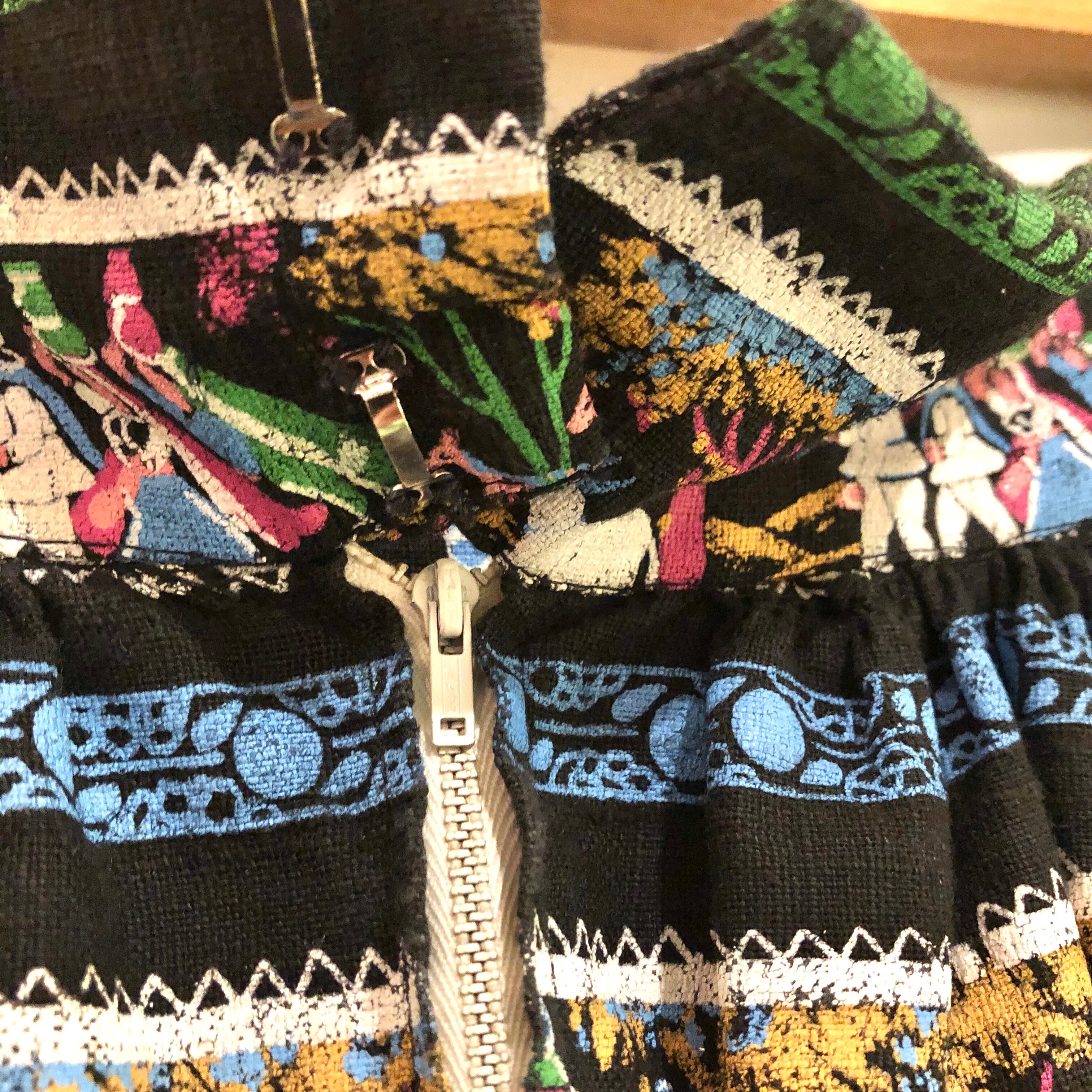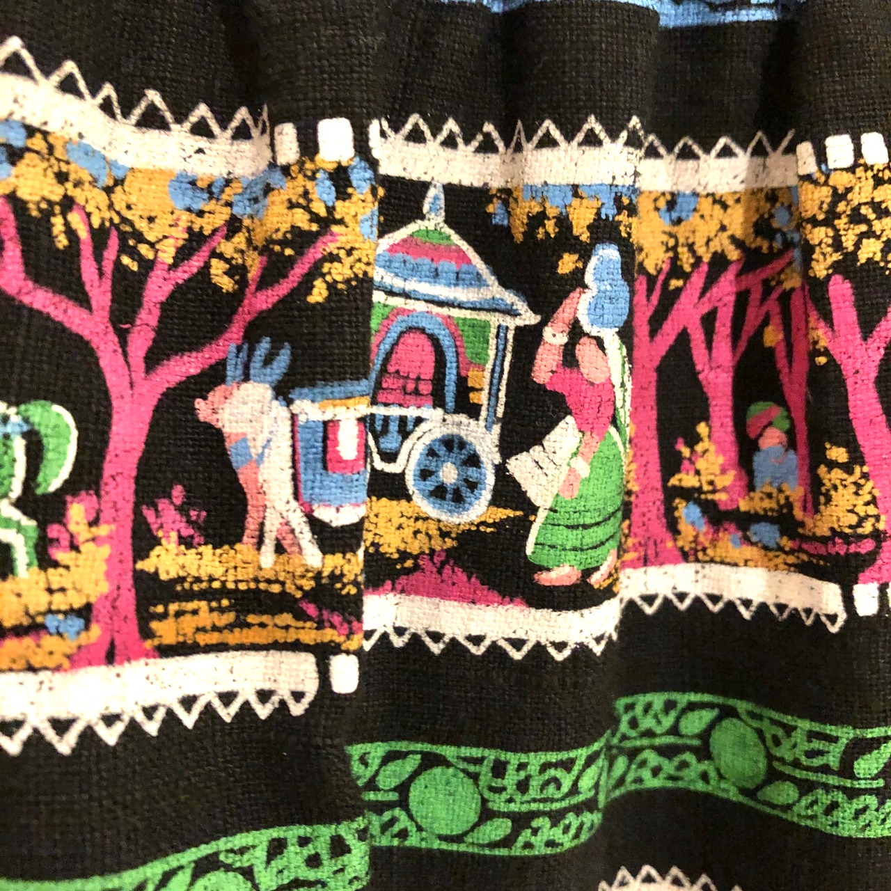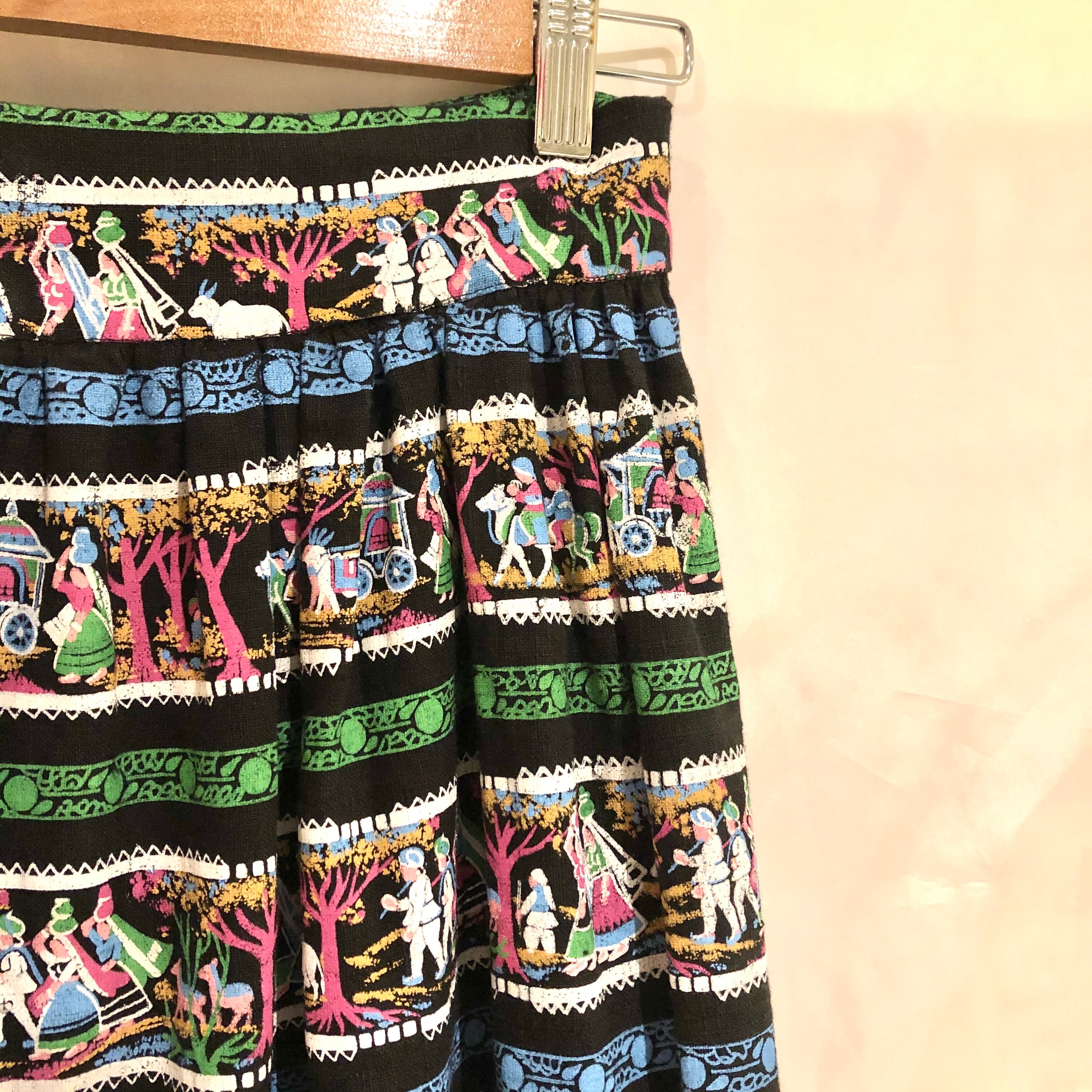 70s- オリエンタル柄 ハンドプリント Aラインスカート