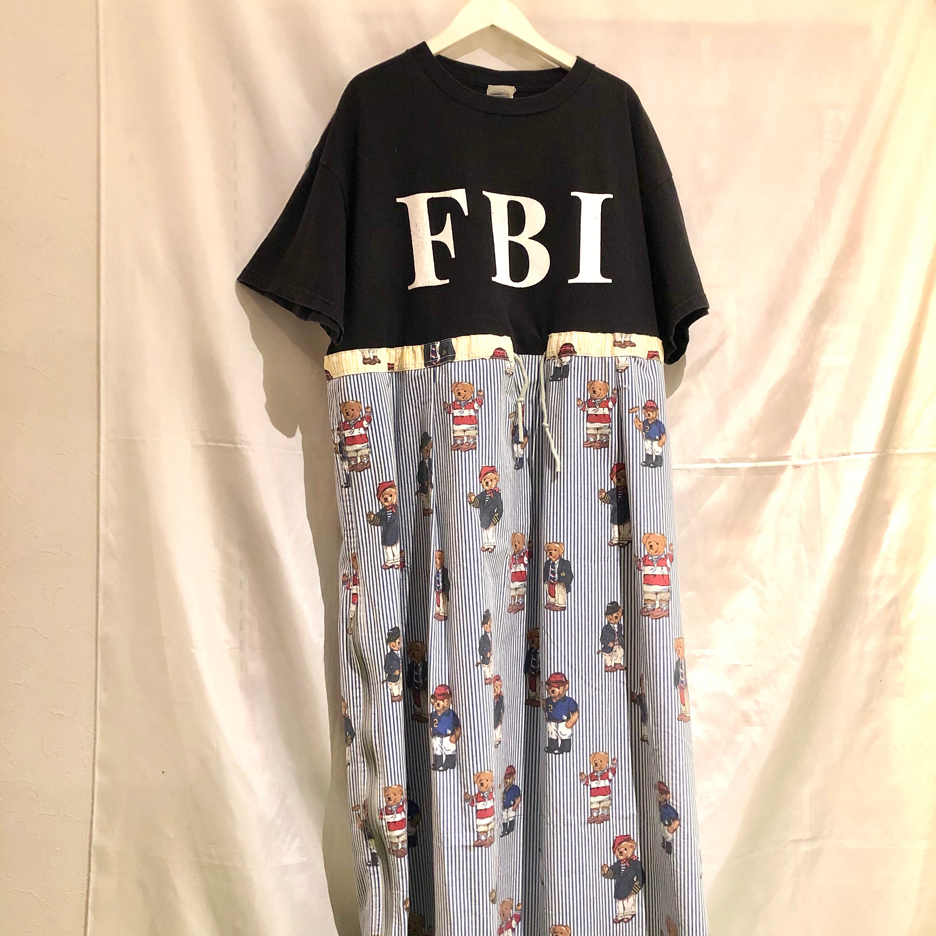 FBIロゴプリントのTシャツにRalphLaurenのポロベアファブリックをドッキングしたTシャツワンピース♡