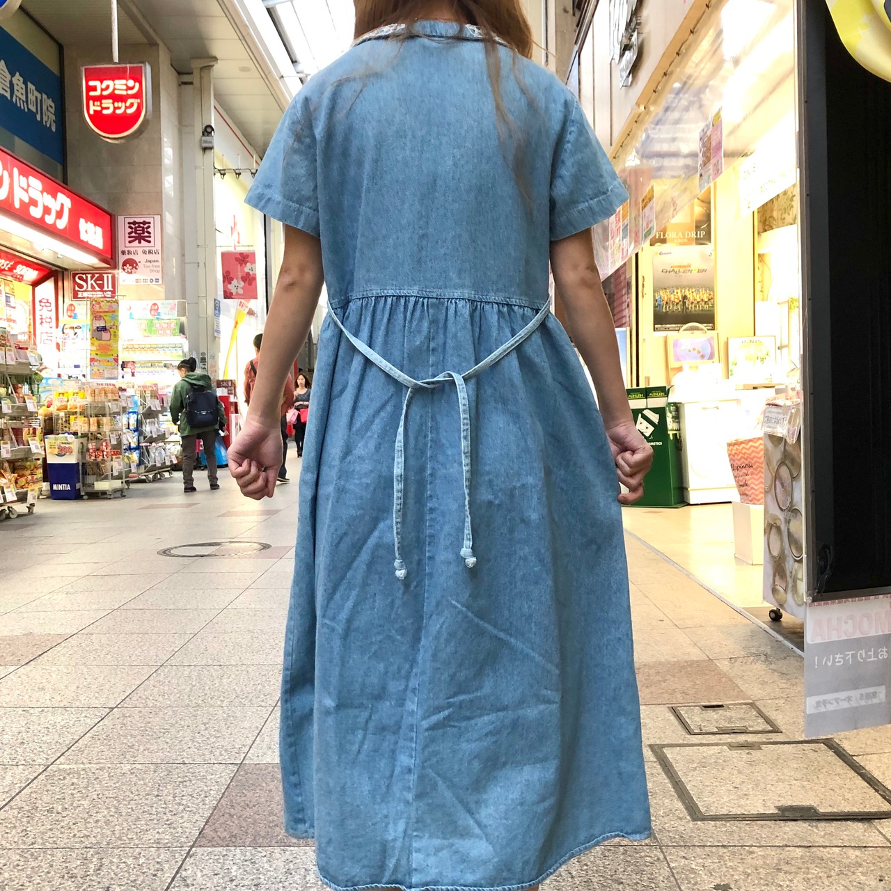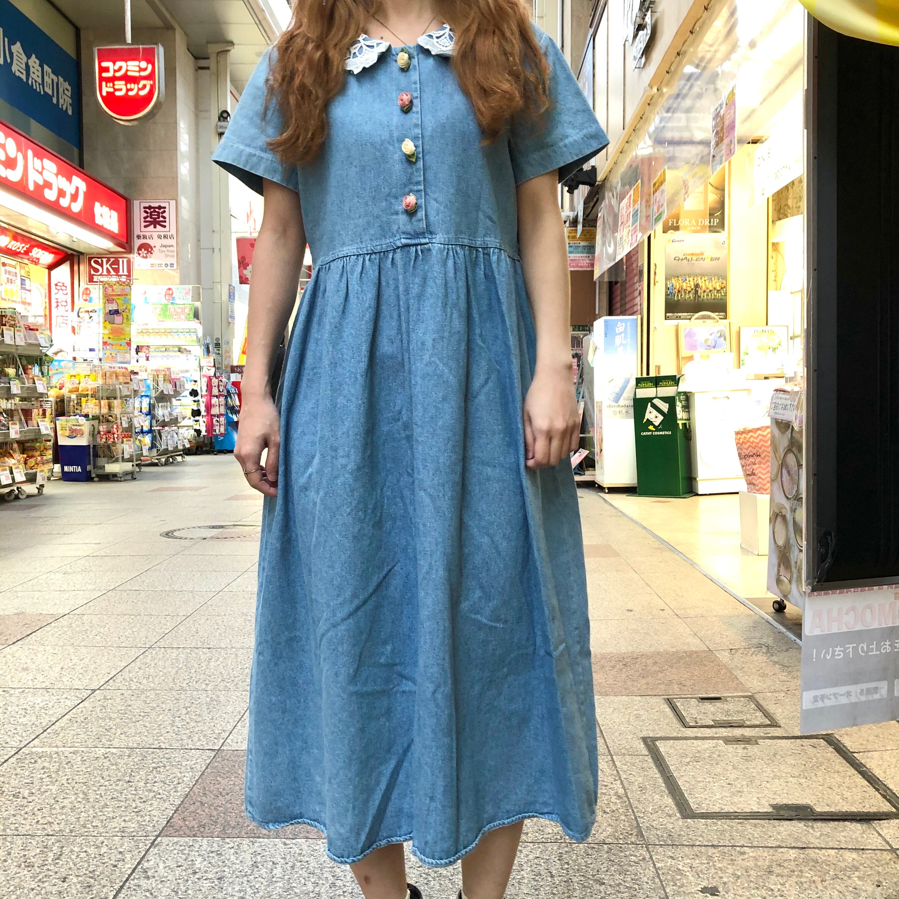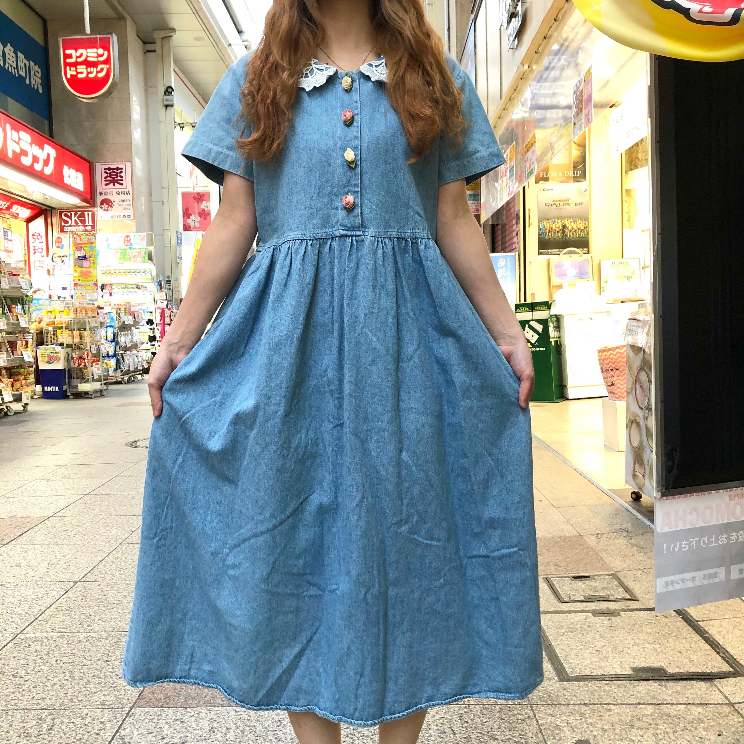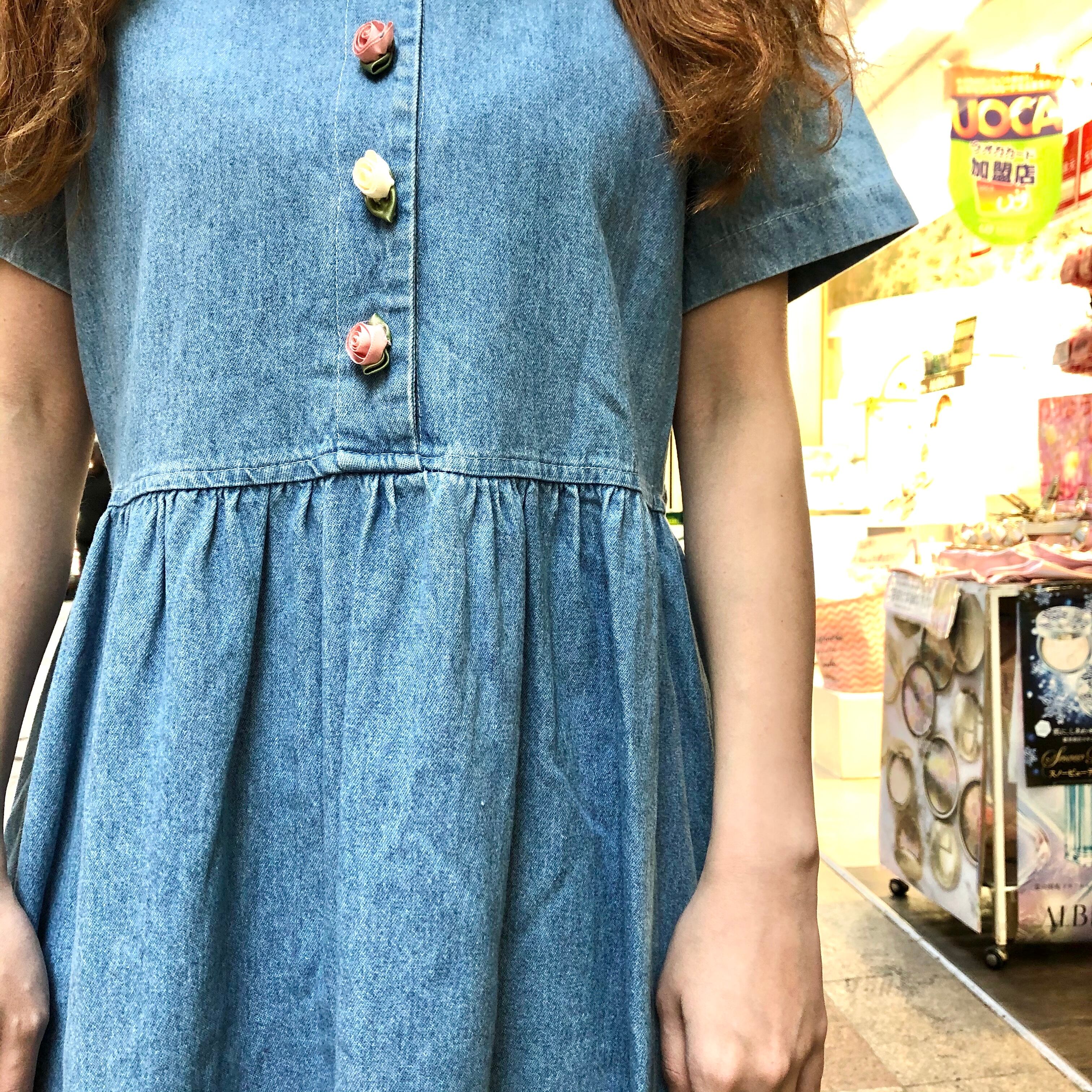 レースの襟にバラのボタンが可愛いデニムワンピース♡