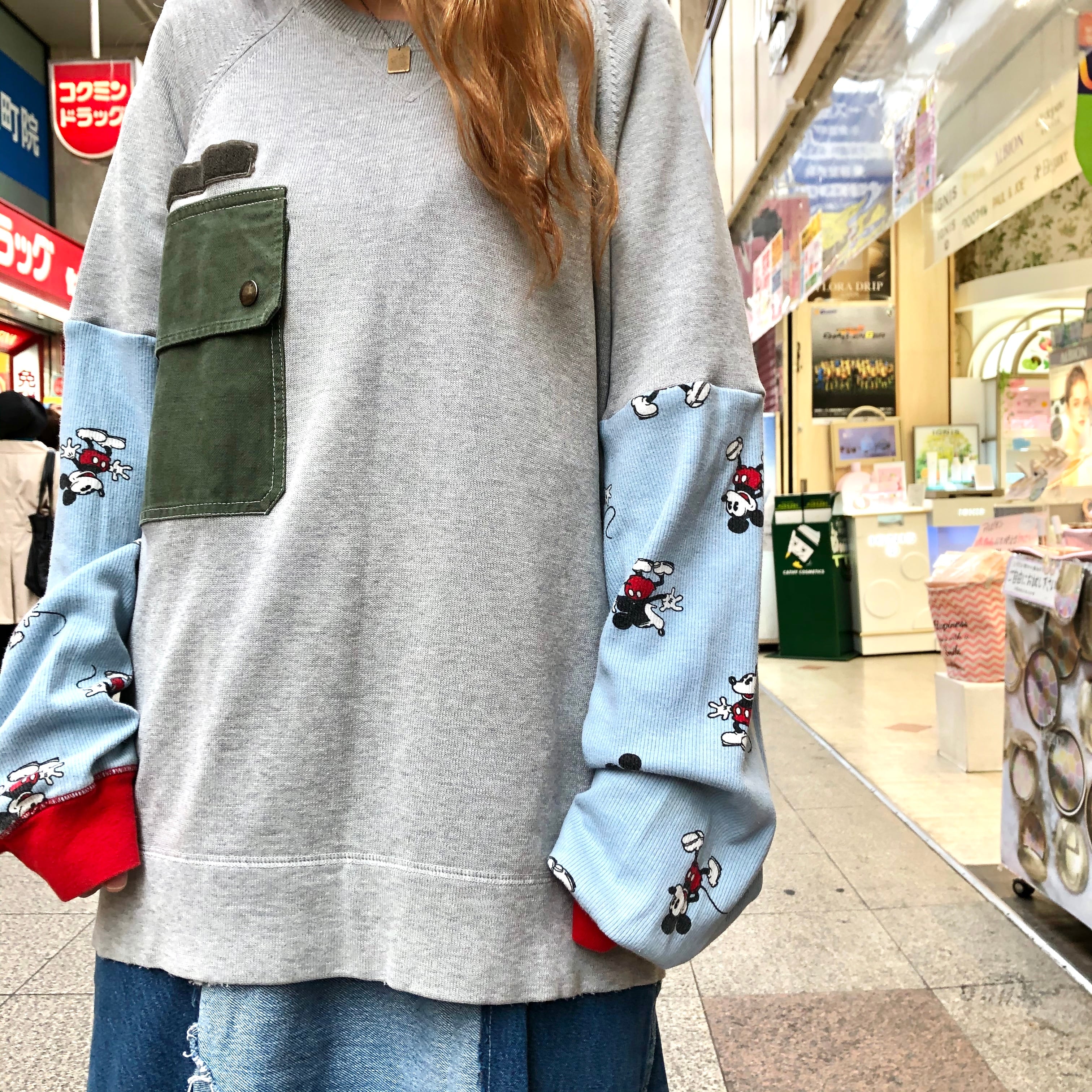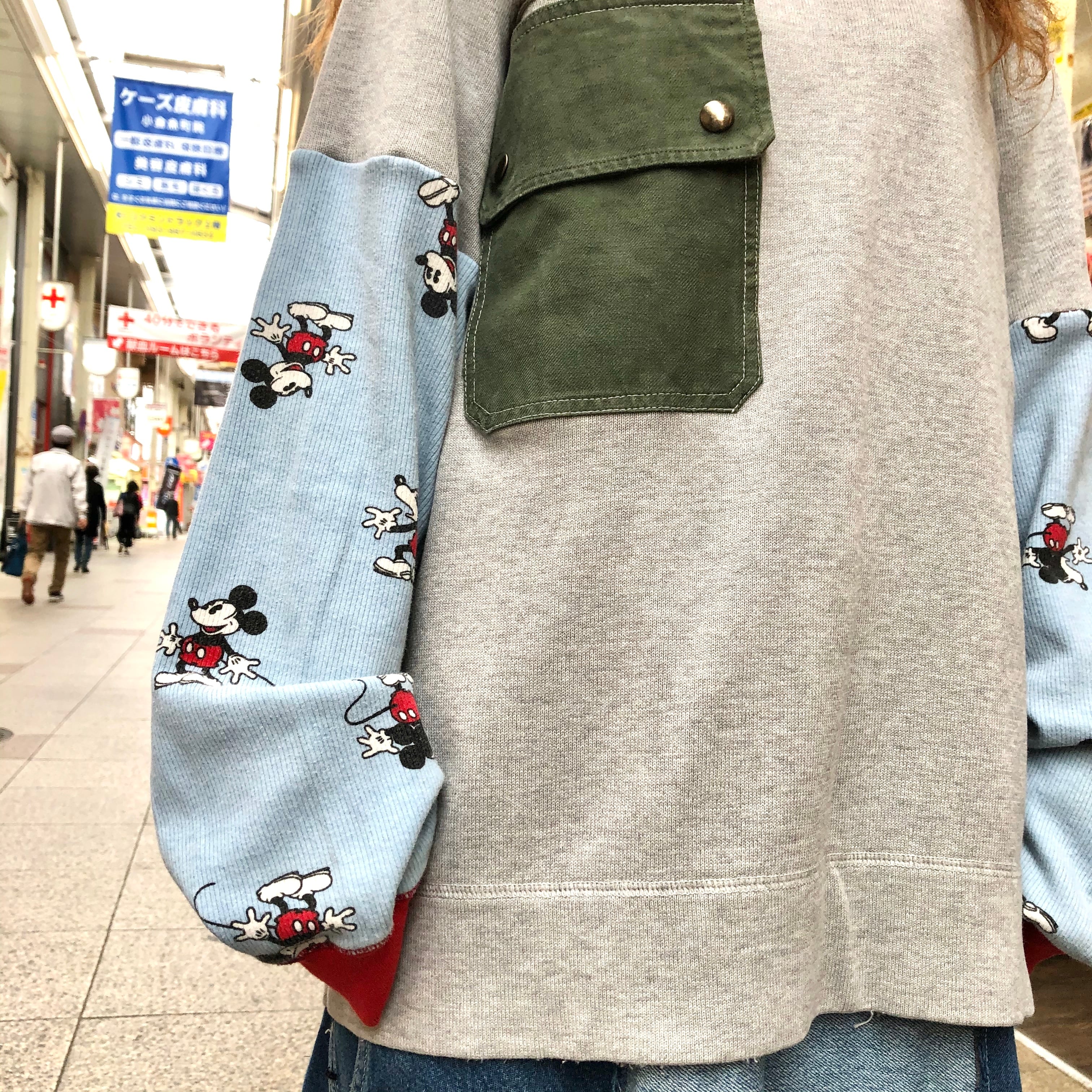 TOMMYのスウェットをベースにミッキーのパンツ、ミリタリージャケットのポケットをドッキングした、リメイクスウェット♡