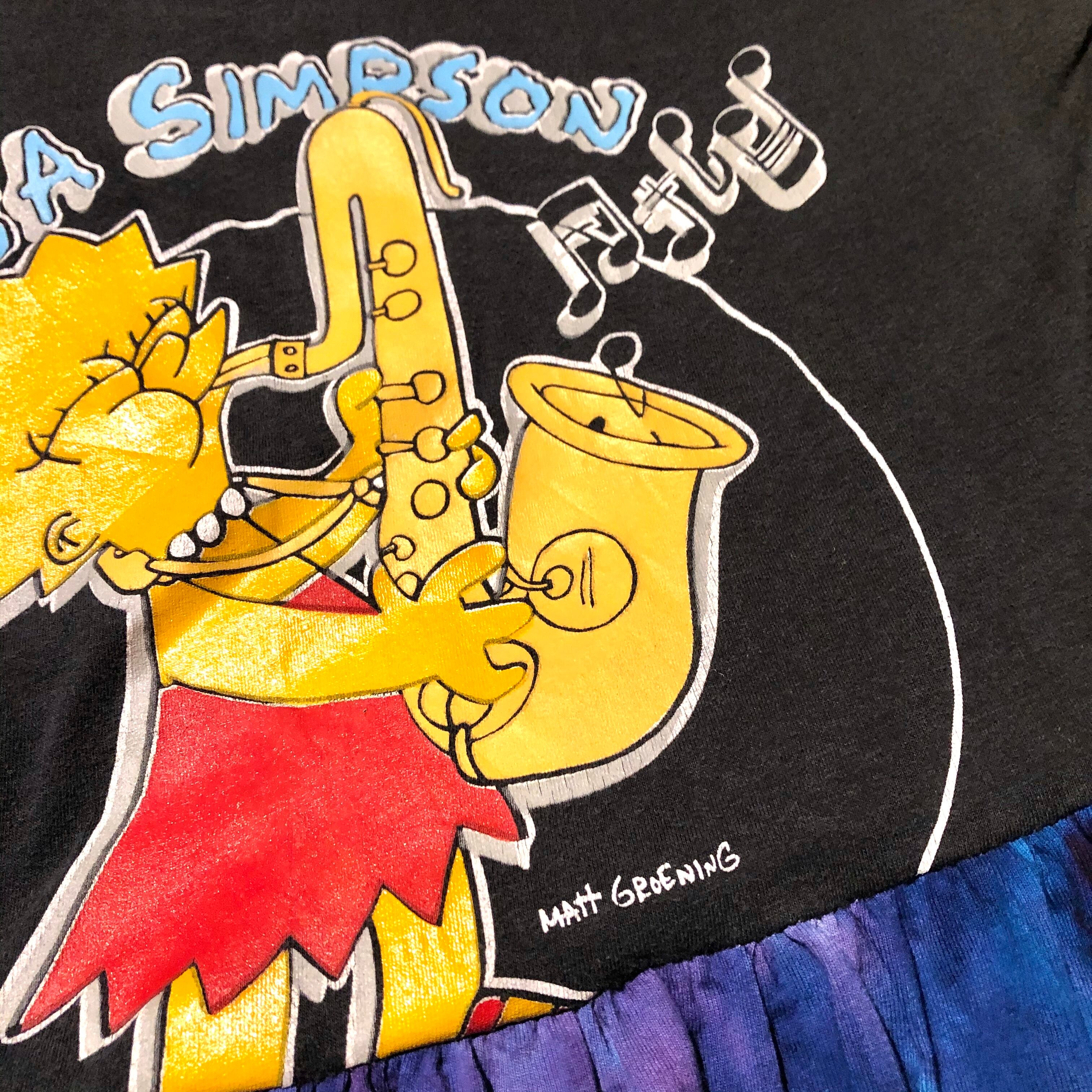 シンプソンズのリサTeeにタイダイ染めのワンピースをドッキング、裾にTシャツ生地をプラスしたリメイクTシャツワンピース♡