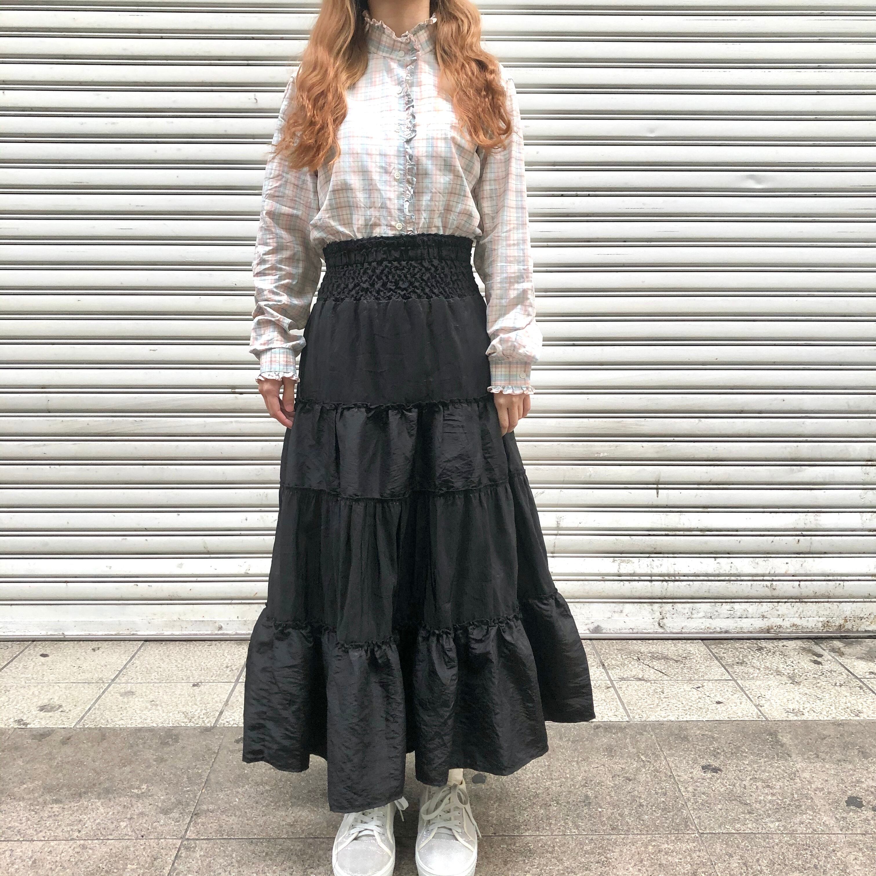 サラッとしたポリエステル素材のブラックティアードスカート♡