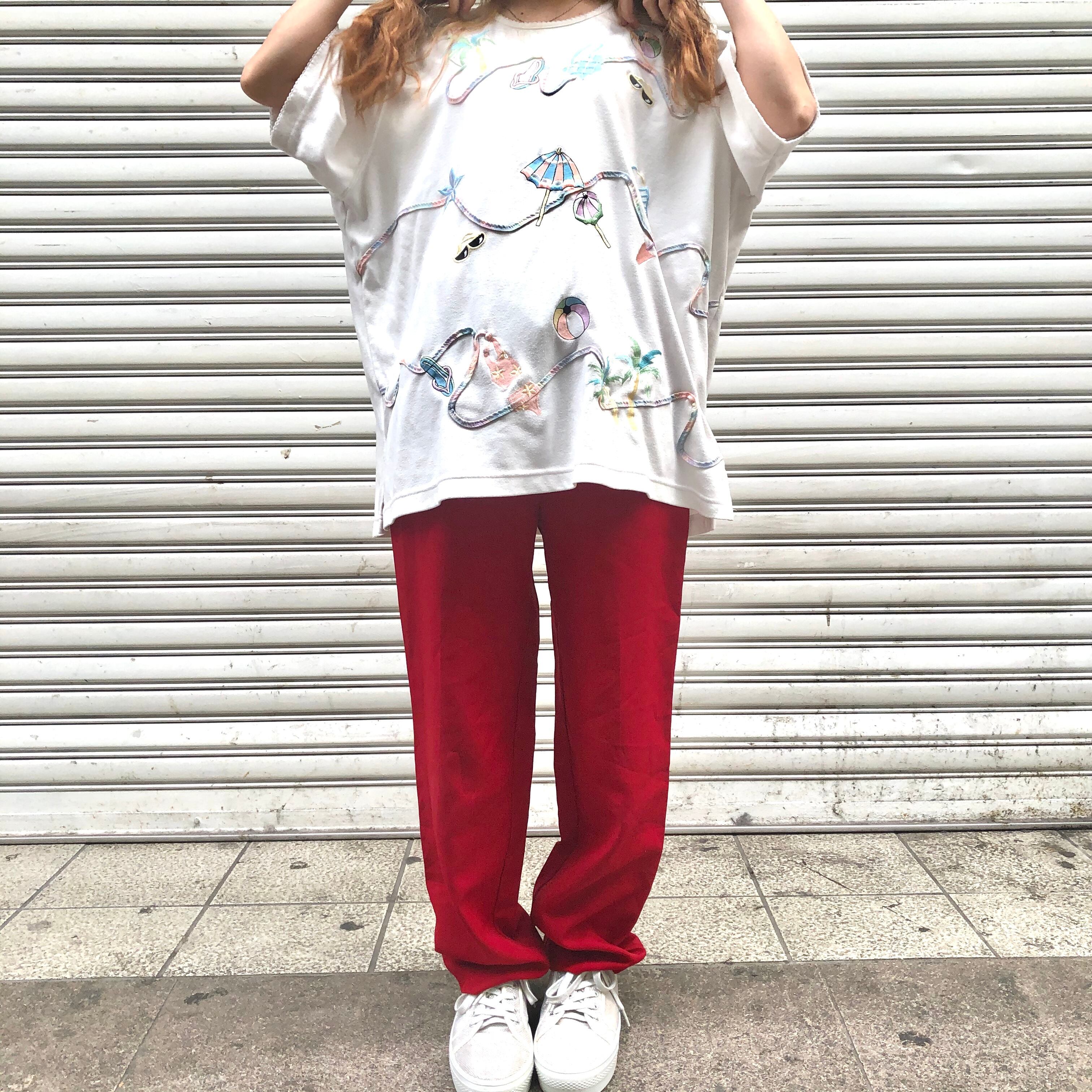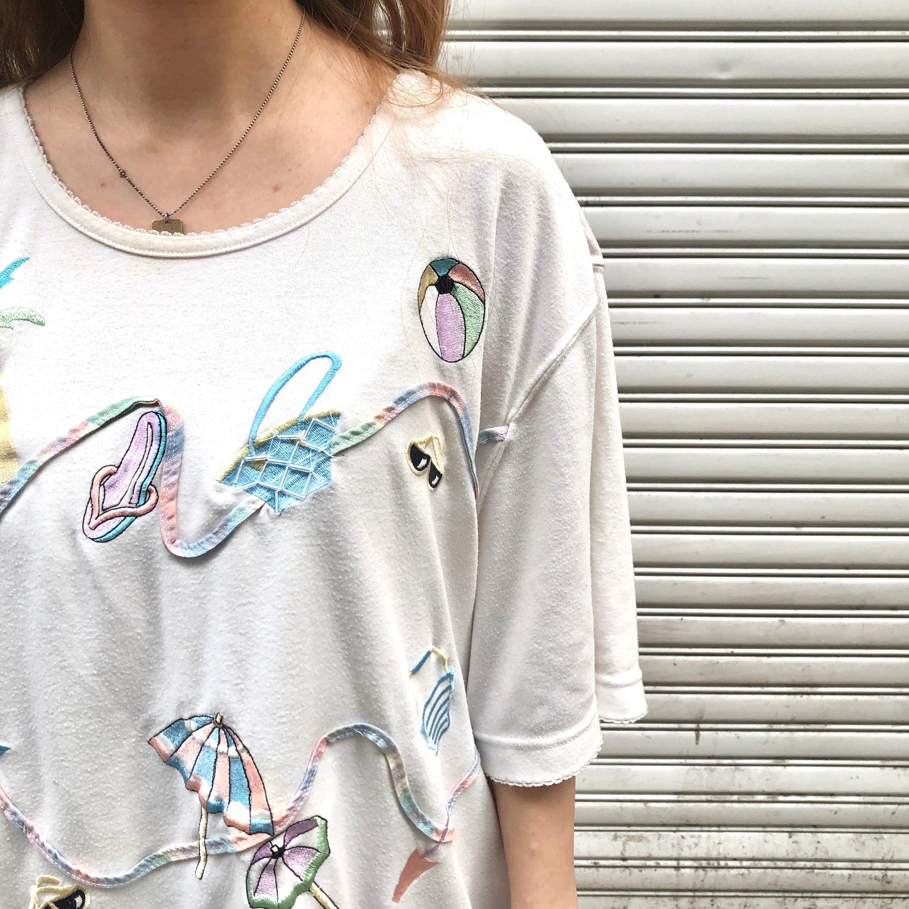パステルなビーチアイテムの刺繍にチェック柄のパイピング☆