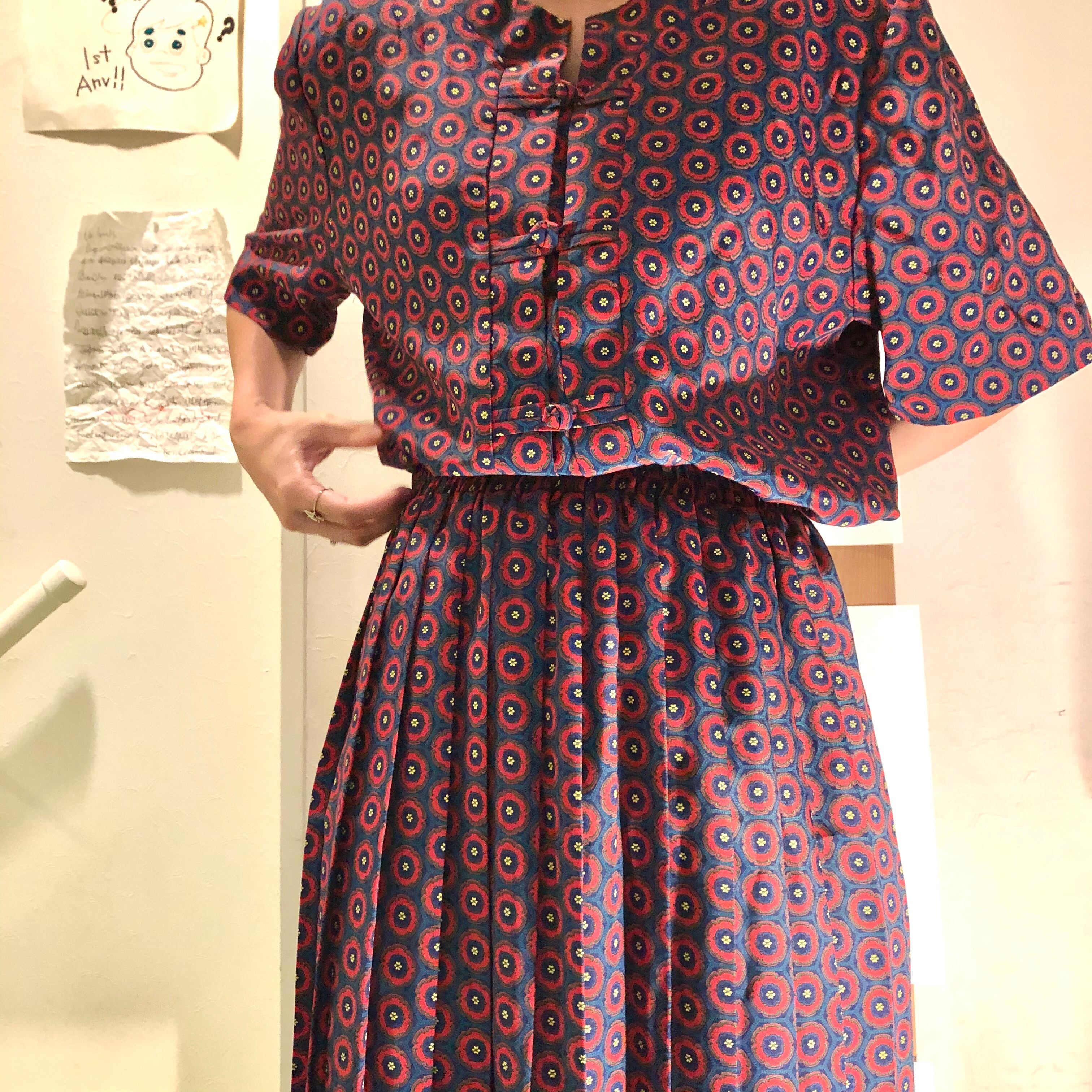 80s- USA製 チャイナデザイン 総柄 セットアップ