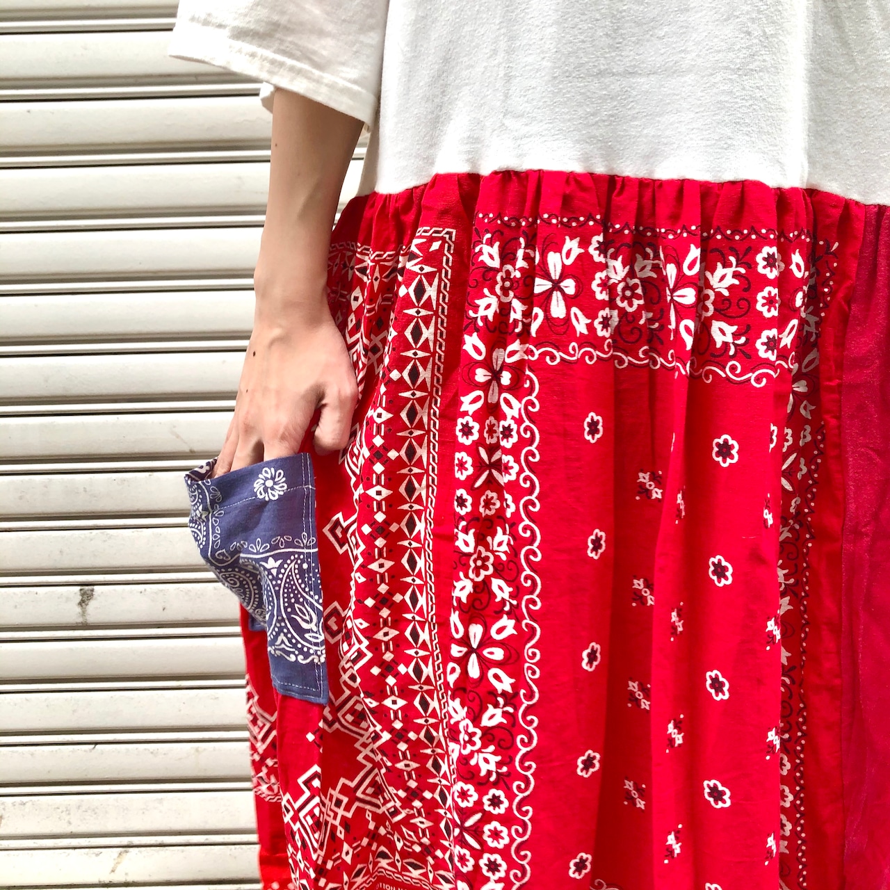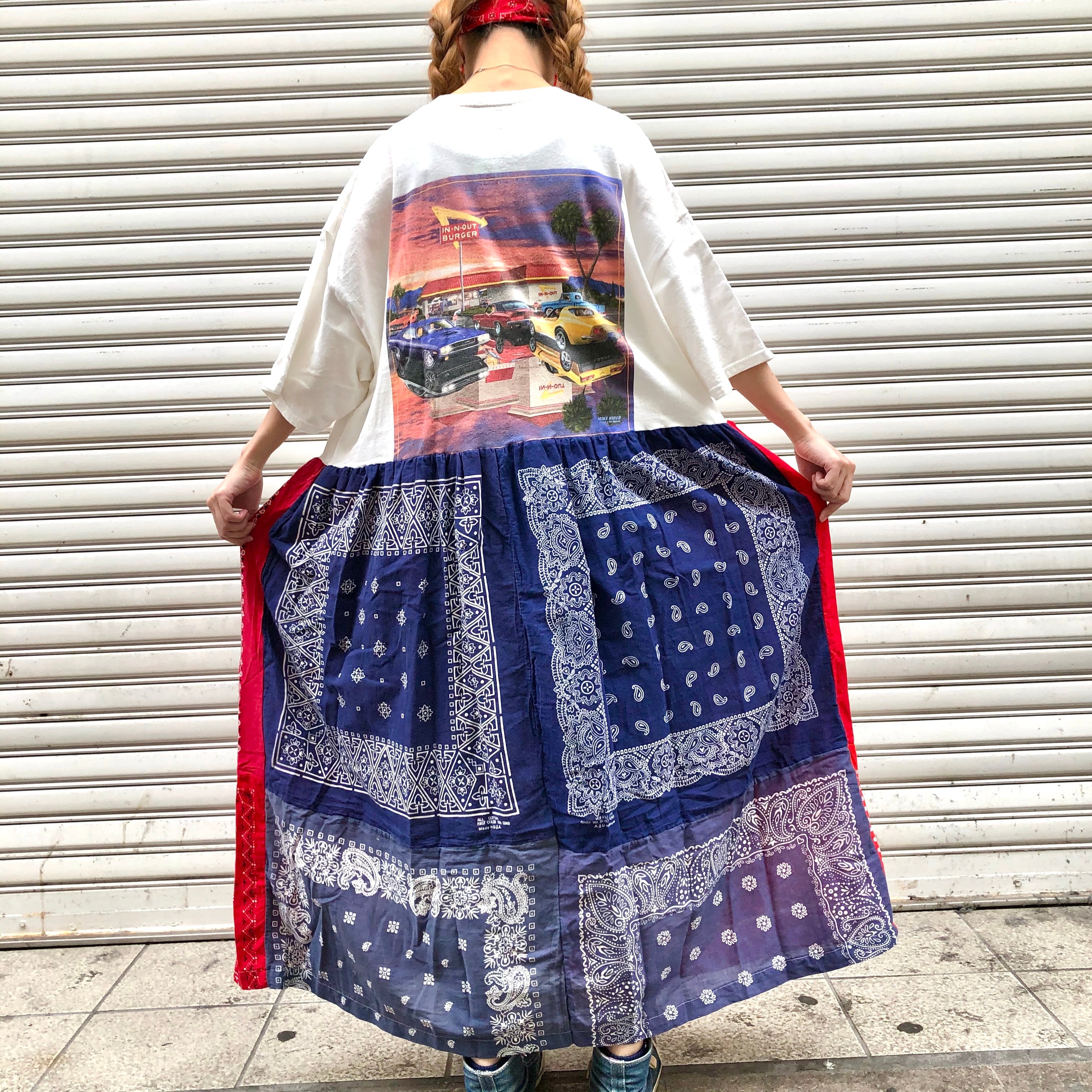人気なIN-N-OUT BURGER Teeに、OLDなバンダナを贅沢に繋ぎ合わせてドッキングしたリメイクワンピースです♡