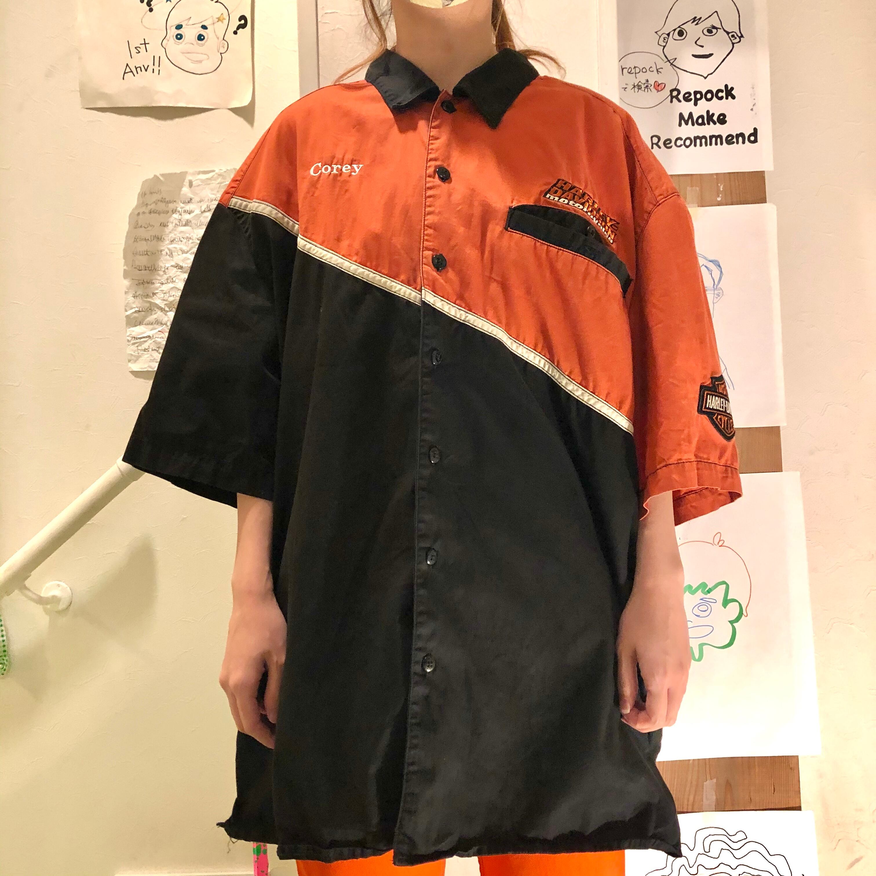 HarleyDavidsonと言えばなオレンジ×ブラックの2トーンカラーが◎なコットンシャツ♡