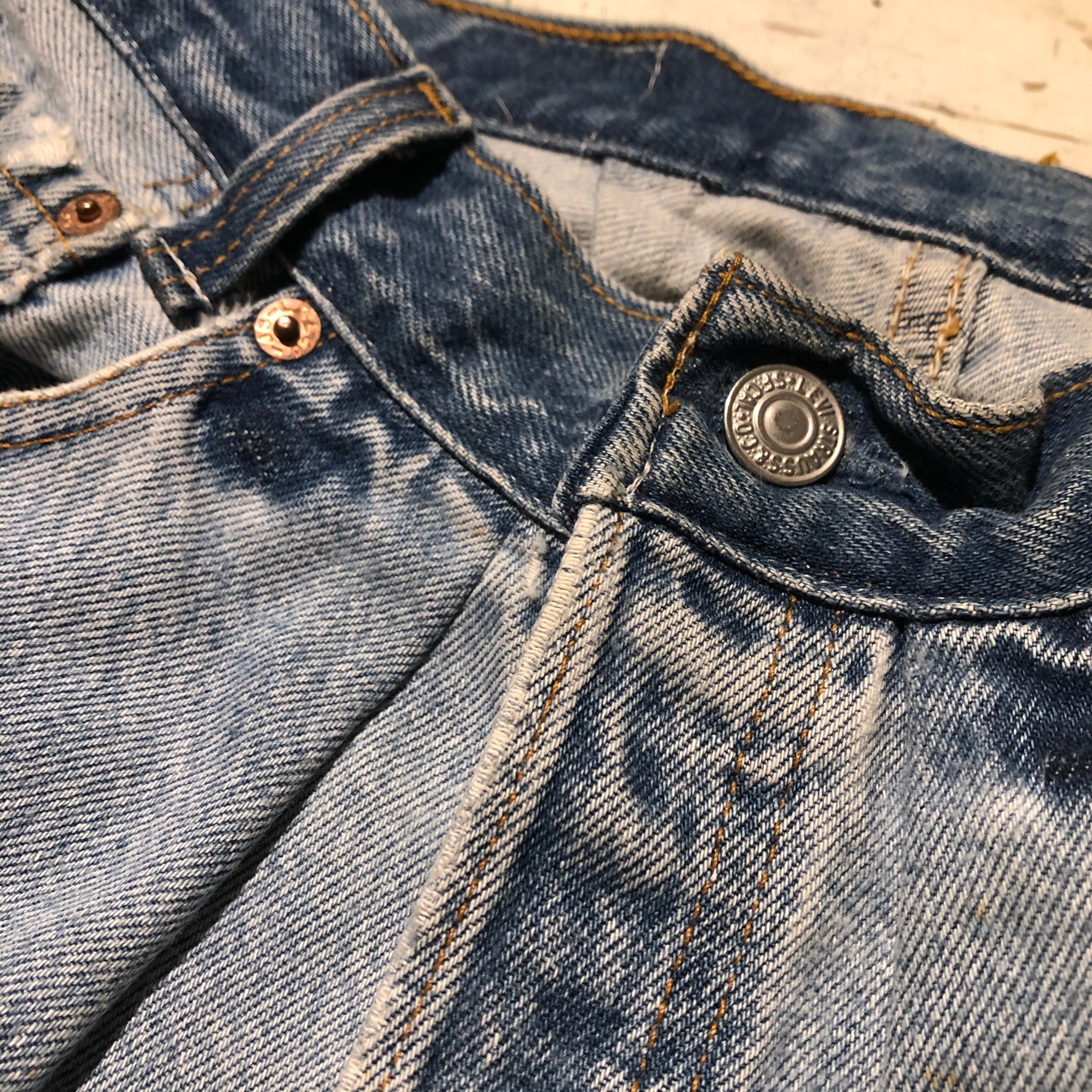 BigSizeのLevis501をベースに、ウエストサイズダウン、ベルト&バックポケットを付け替えてリメイクした一本♡