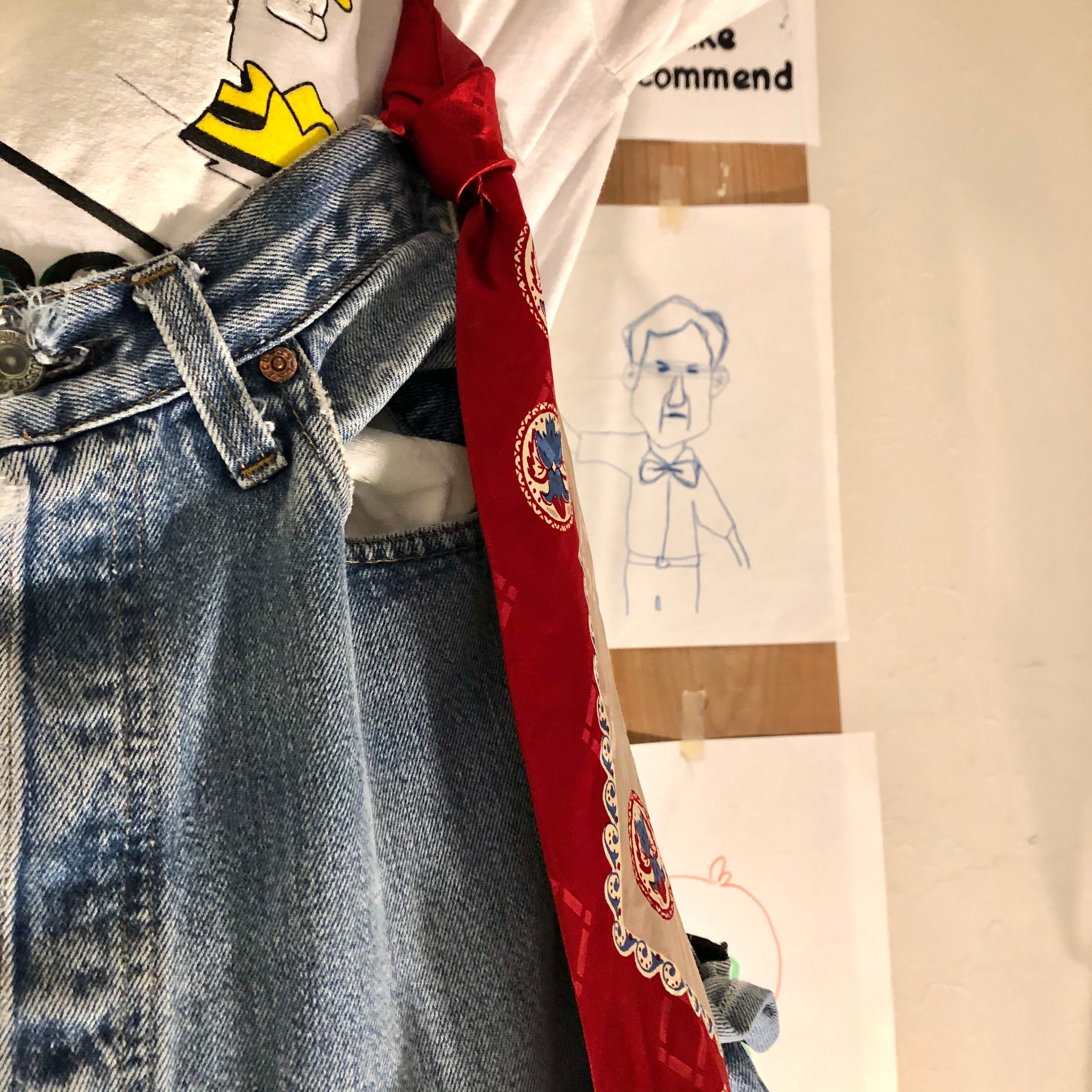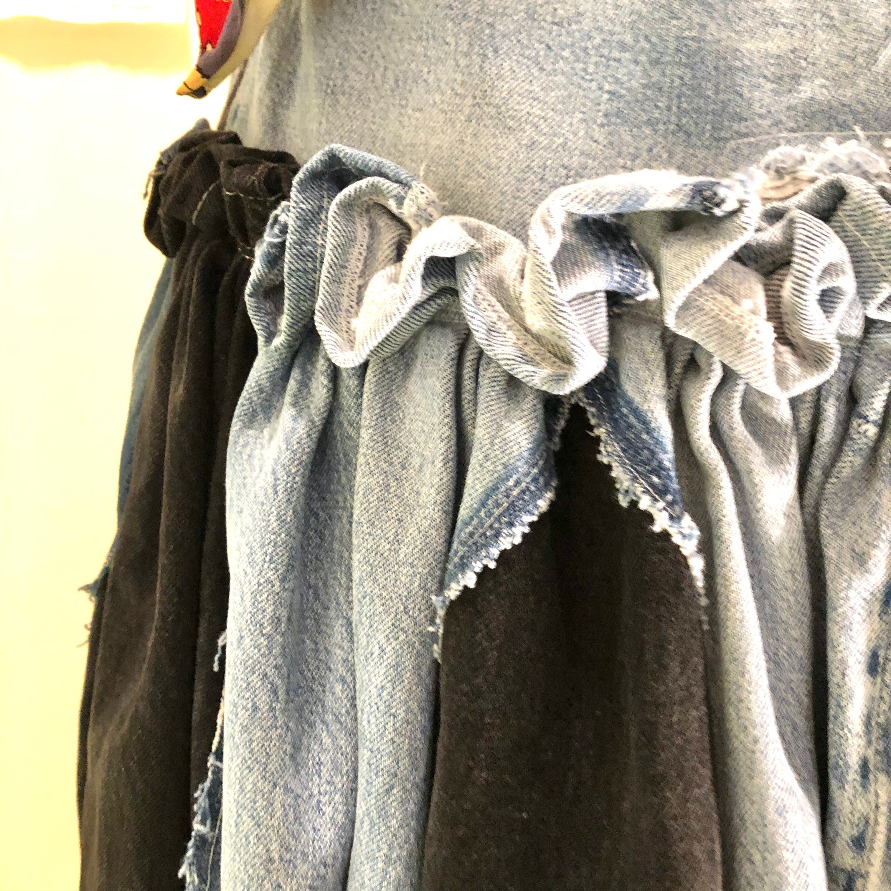 Levis501をベースにLevis BLKをMIX、肩紐にVintageのネクタイを使ったリメイクチュニック♡