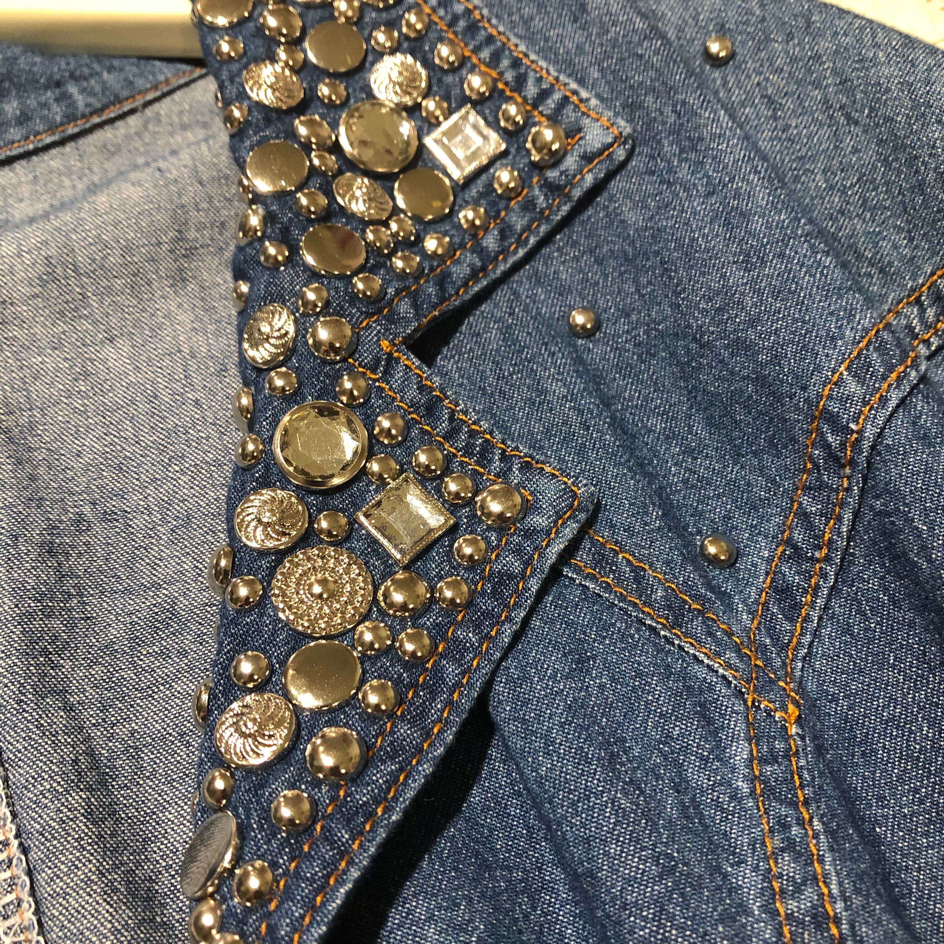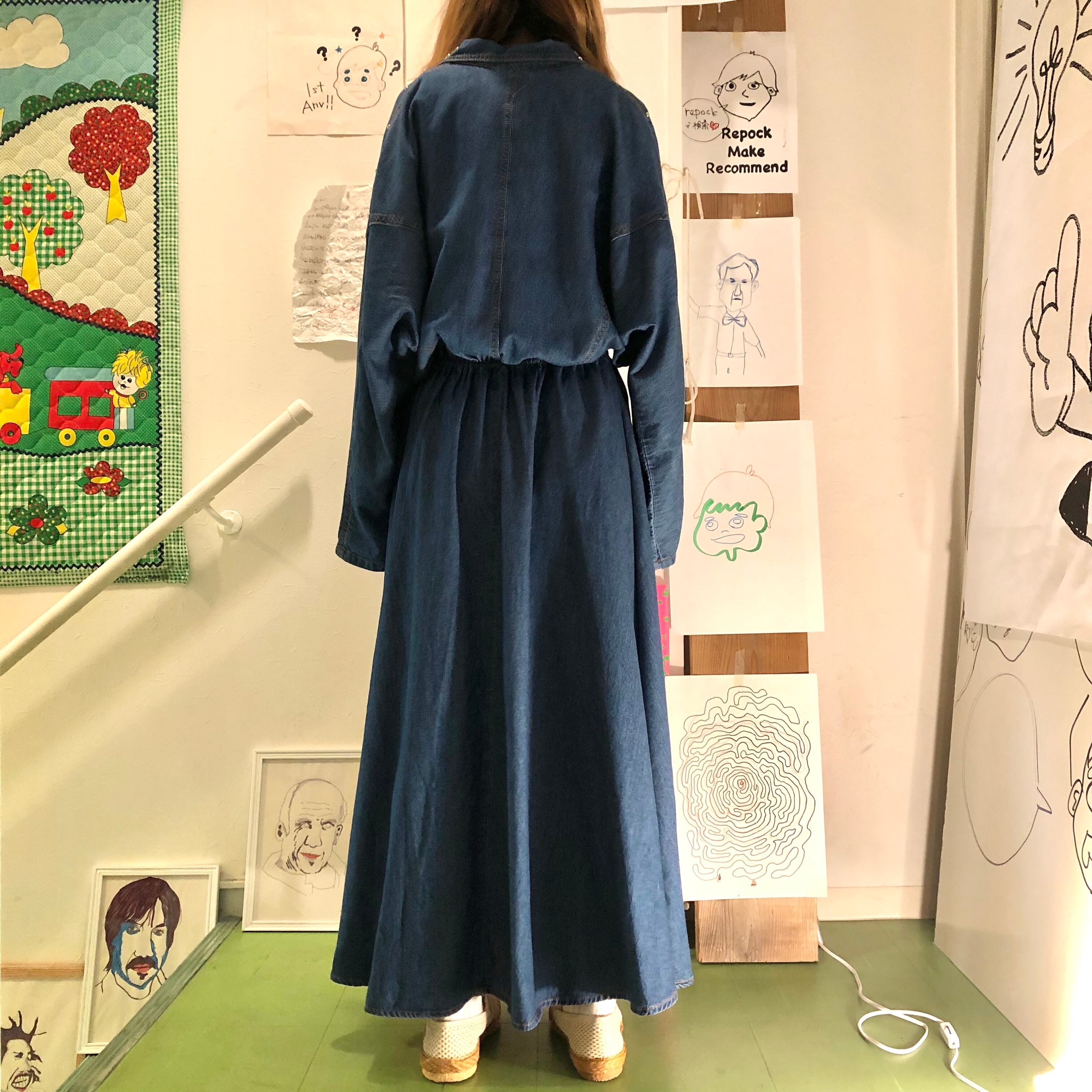 80s- スタッズ付き ドルマンスリーブ デニムワンピース