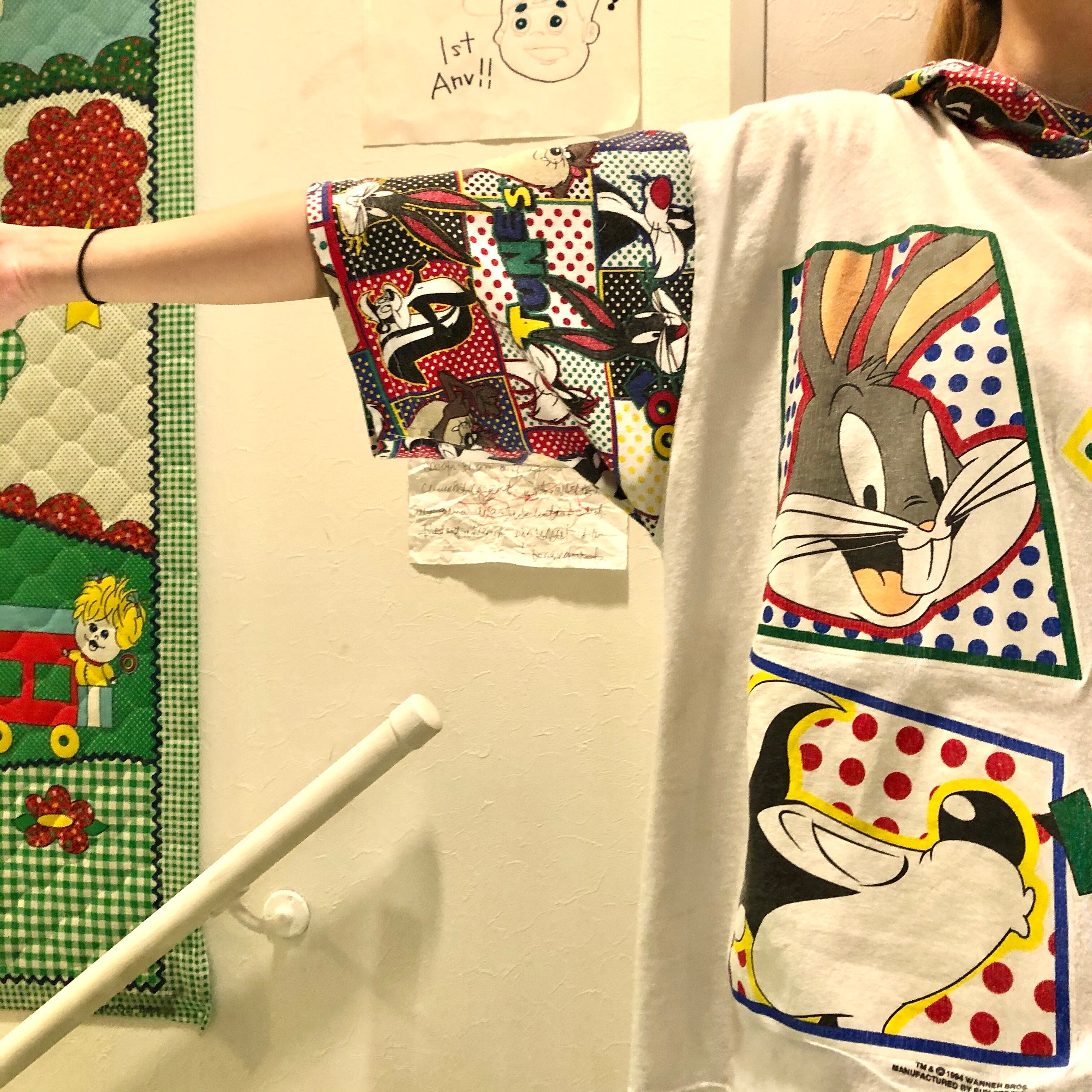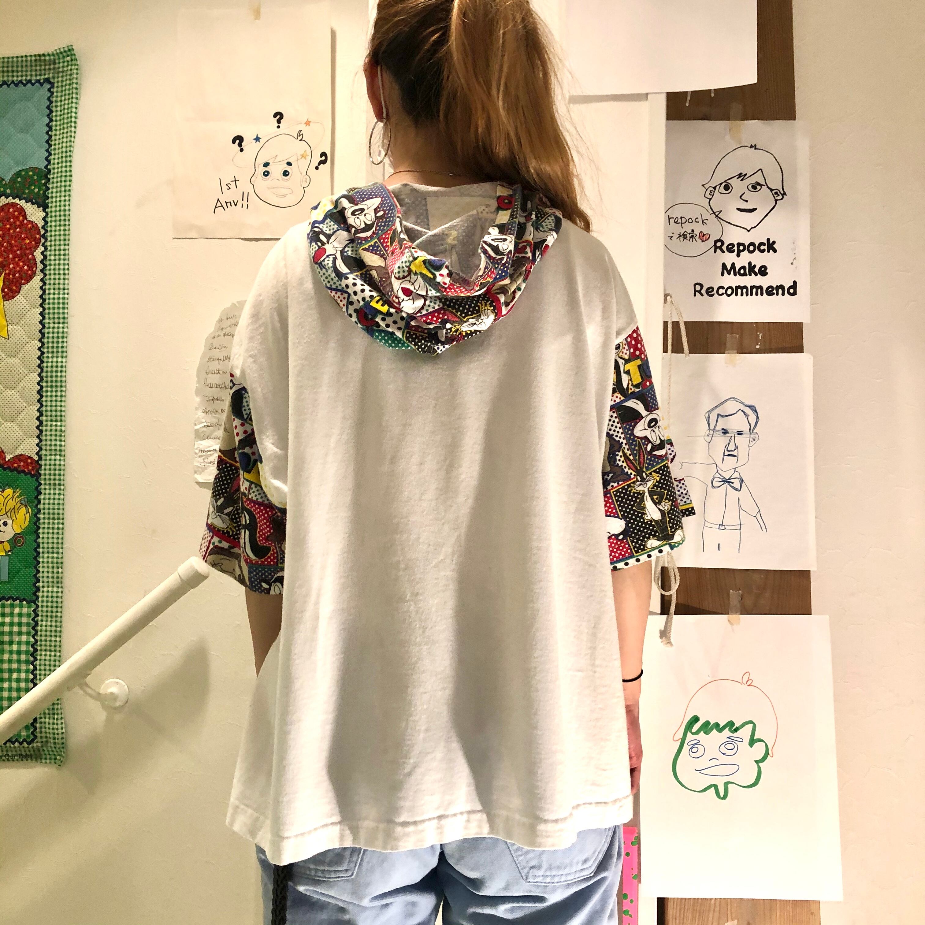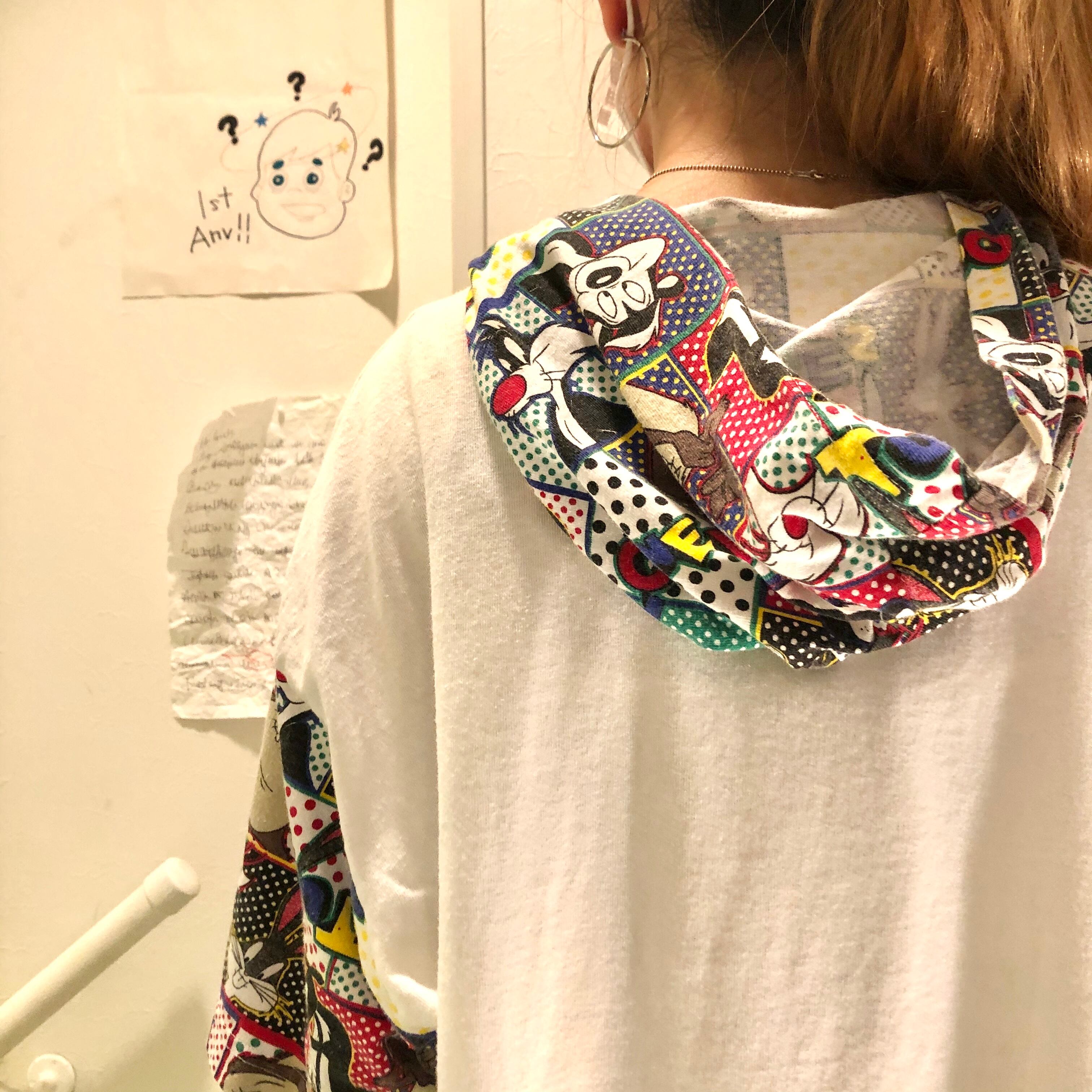 ホワイトベースにポップでカラフルなLOONEY TUNESのキャラクタープリント、袖&フードにLOONEY TUNESファブリックで切り替えられたナイスな1枚♡