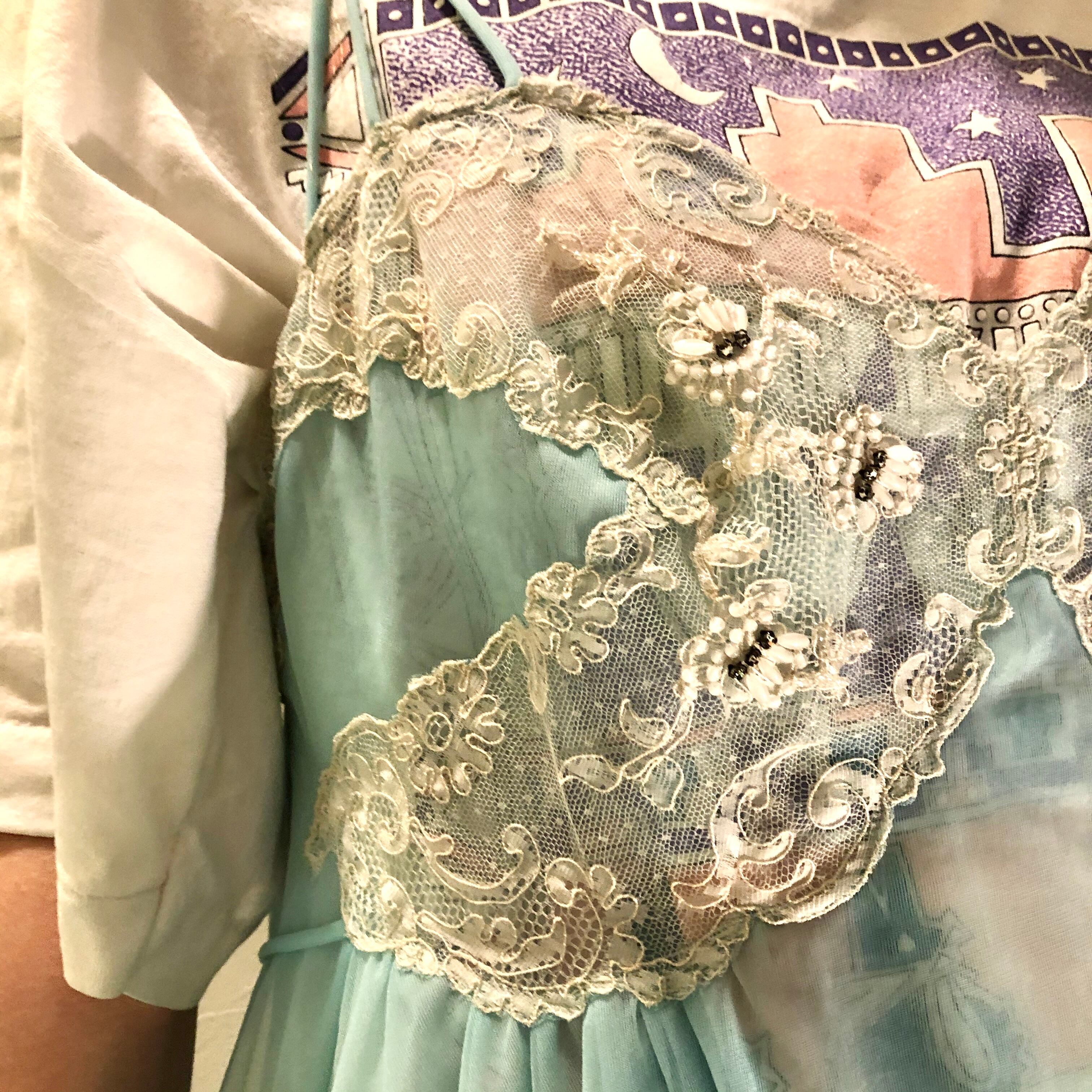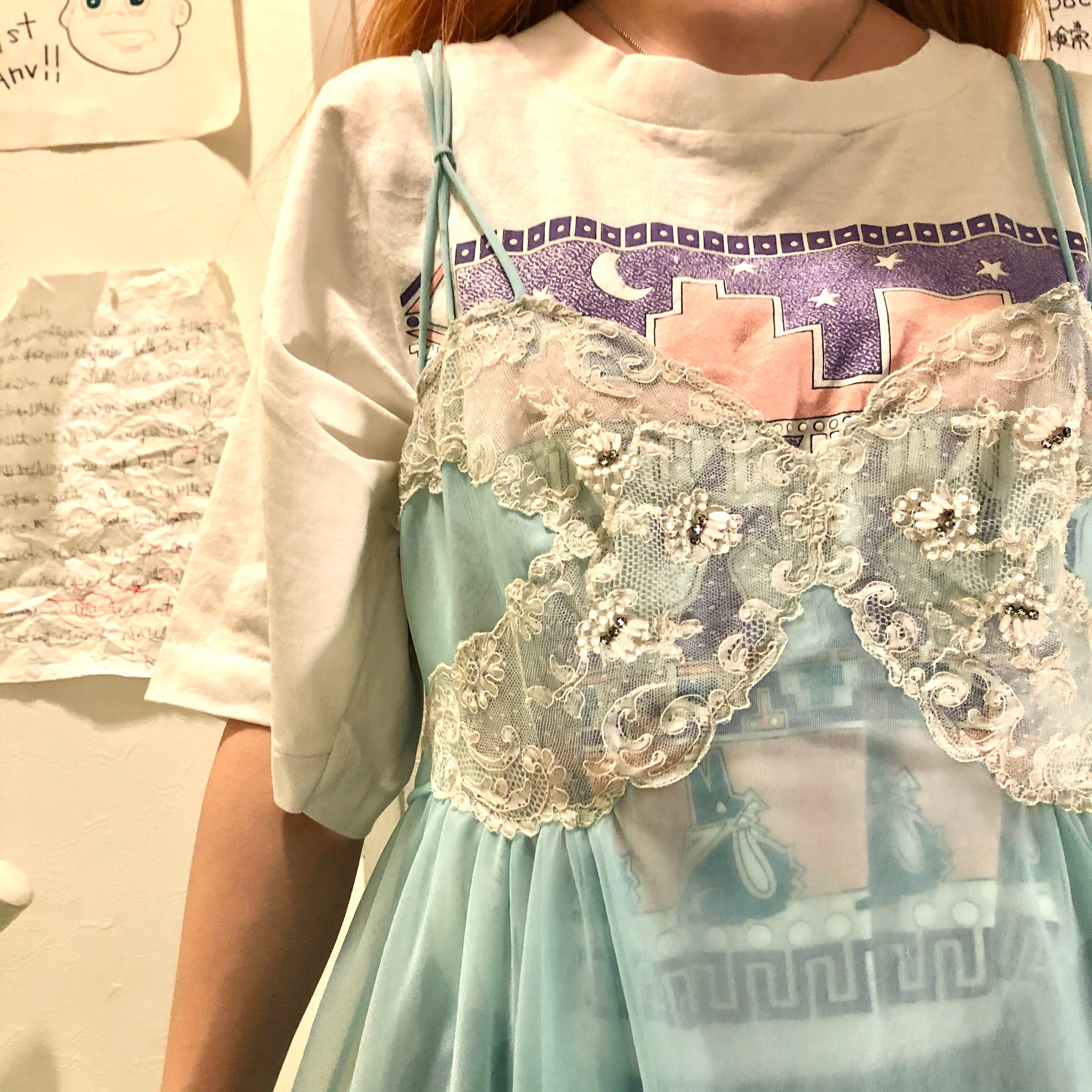 パステルカラーにシースルーでシアーな雰囲気が◎なOldネグリジェワンピース♡