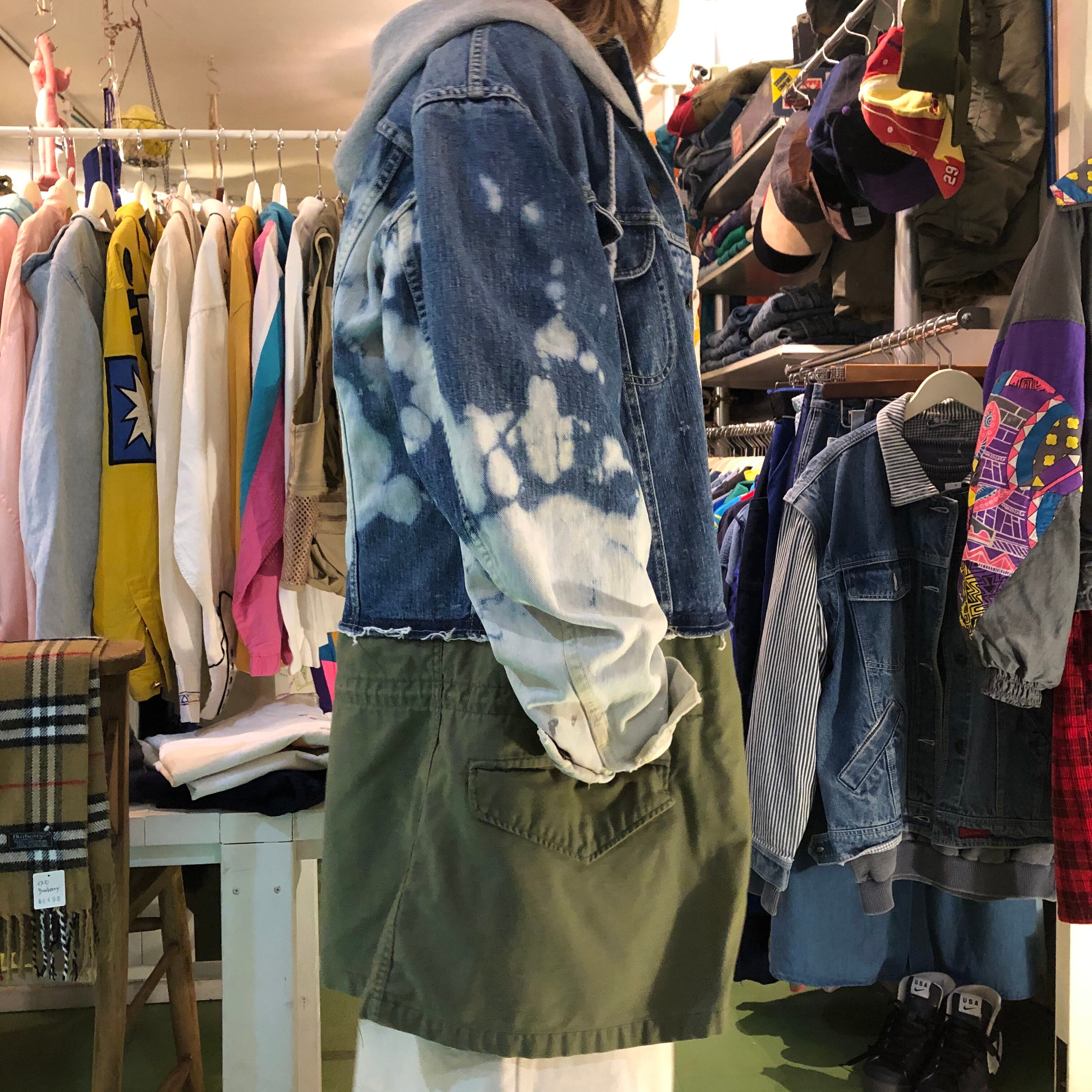 OldなLeeのデニムジャケットにフード、M-65フィールドジャケットをドッキングした、リメイクコート♡