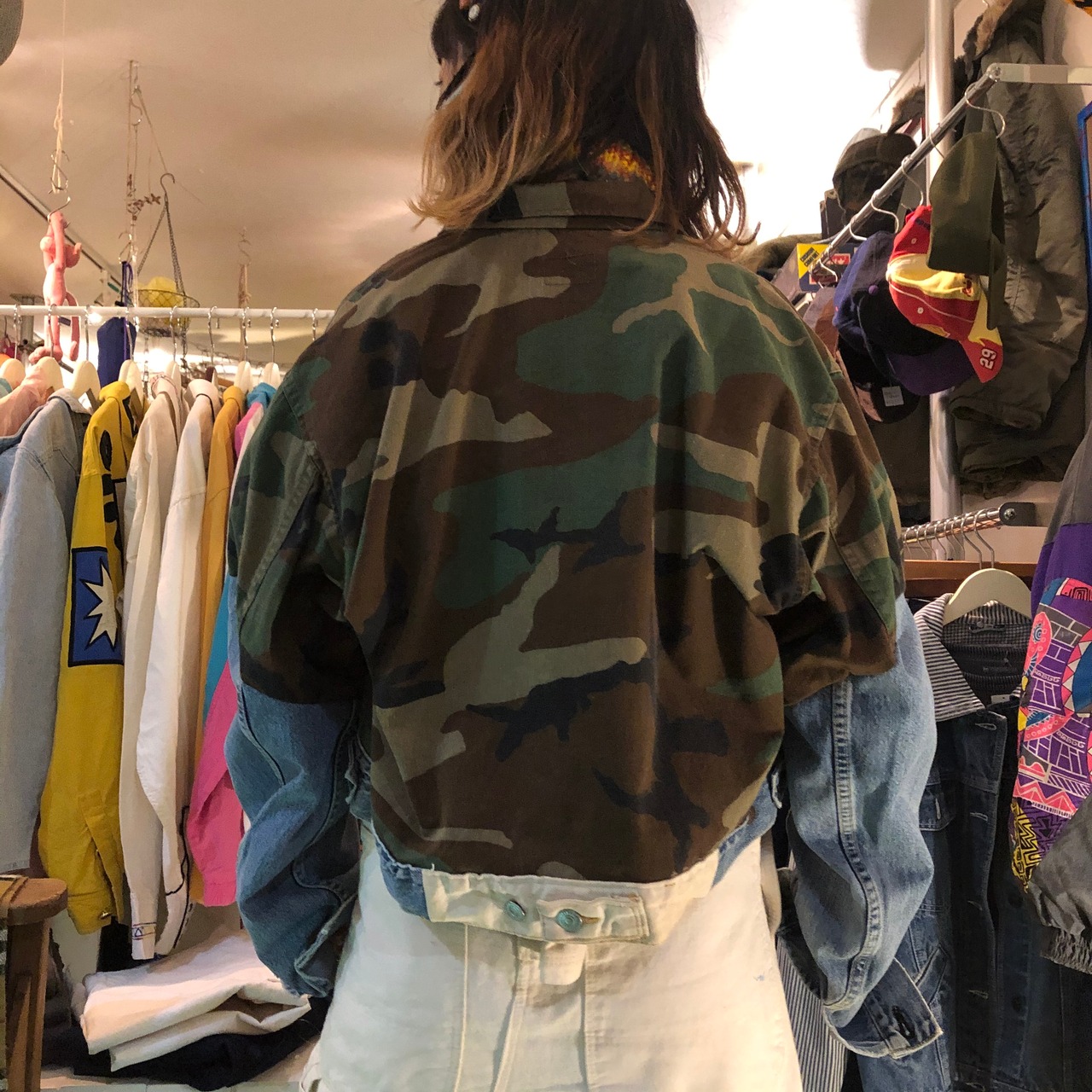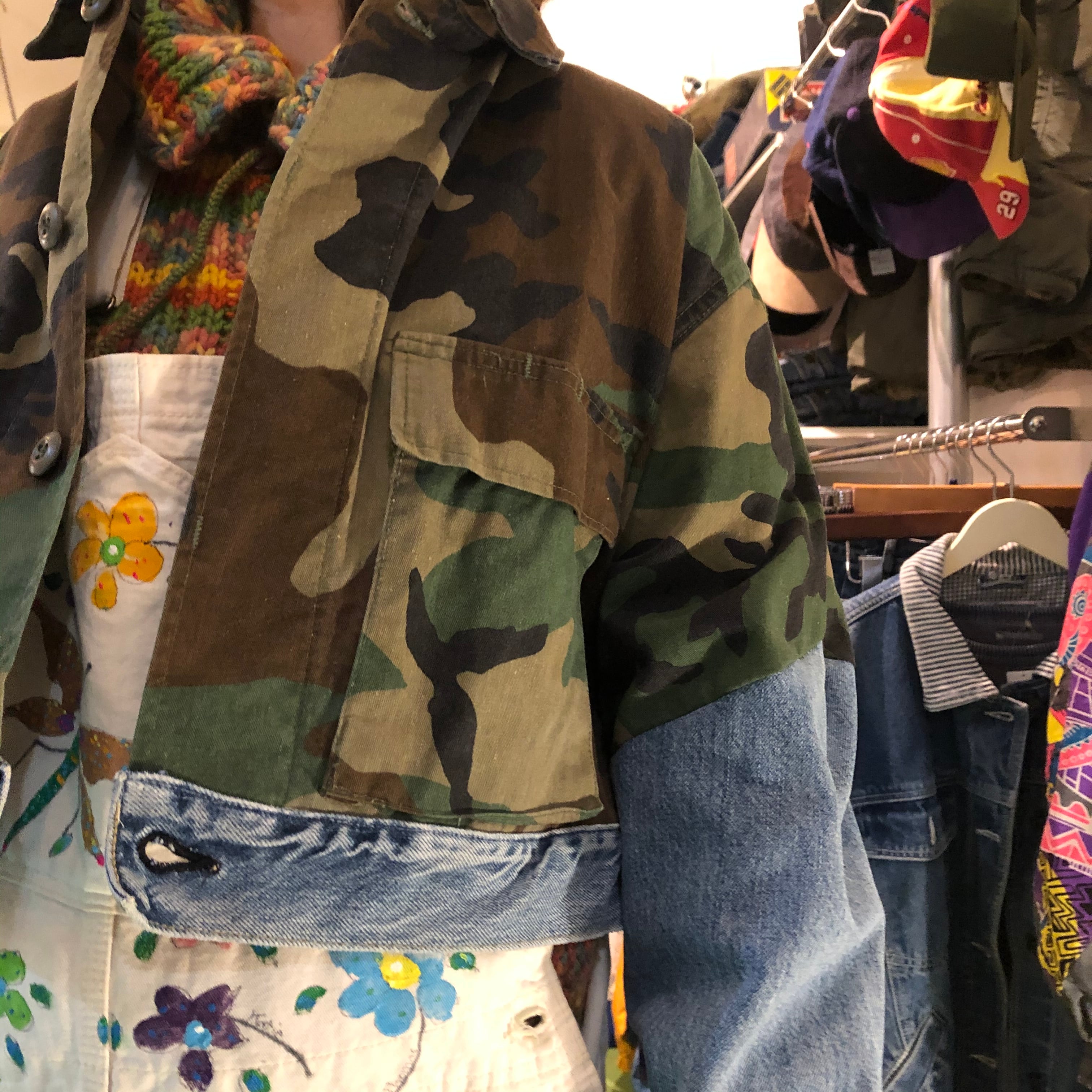 ミリタリーシャツにLevisのデニムジャケットの袖&ベルトをドッキング♡