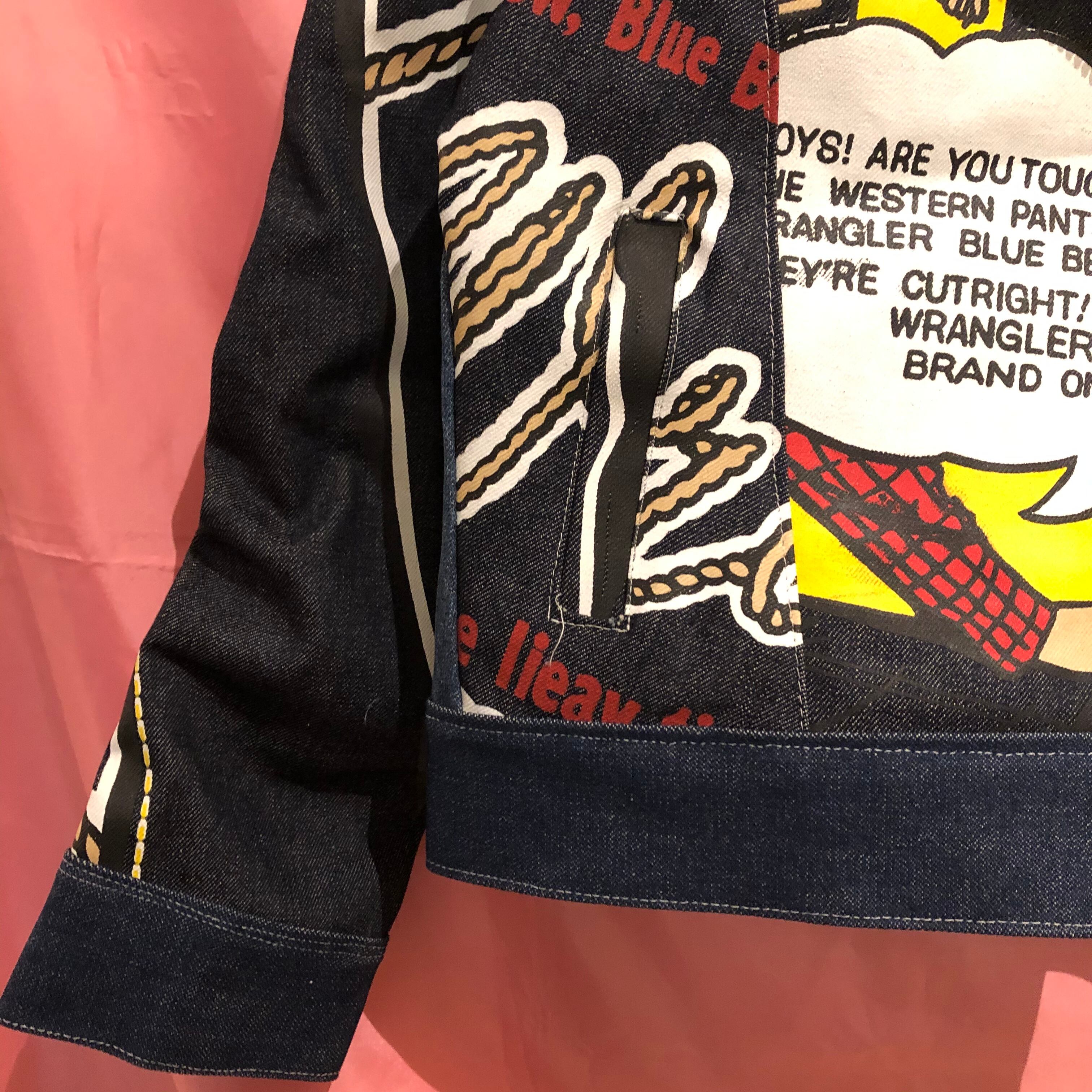 ノンウォッシュなデニムにポップなペイントがgoodなWranglerのデニムタペストリーとWraglerのデニムパンツを解体して、Rnbuild(再構築)した唯一無二なデニムライダースジャケット♡
