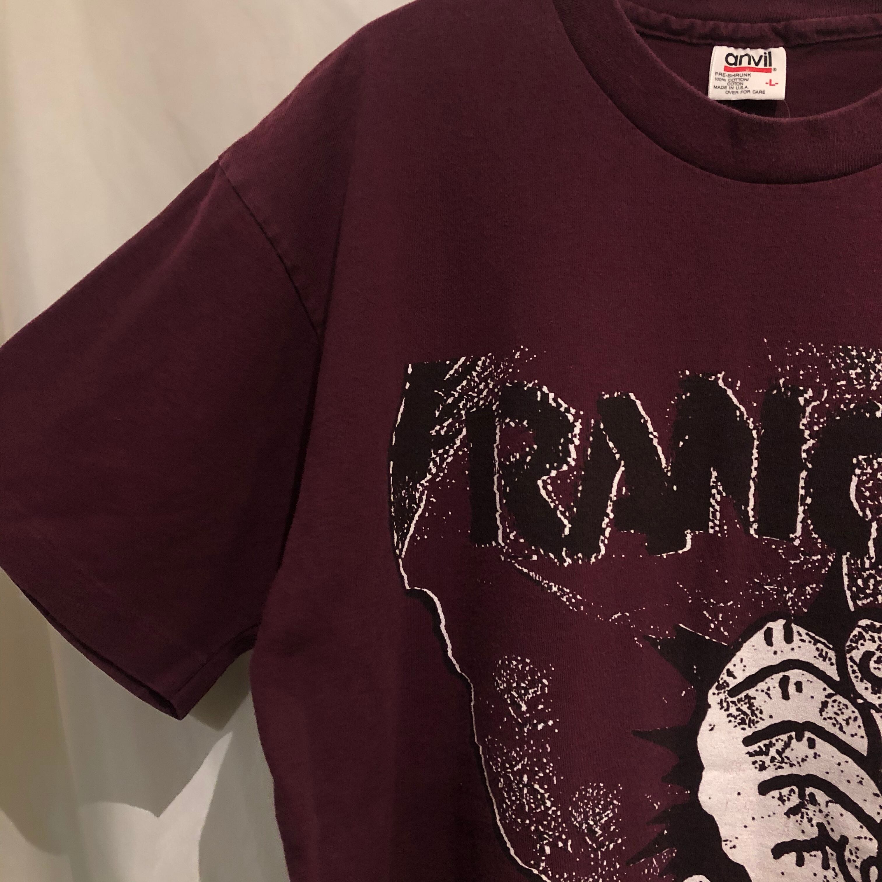 ボディカラーはバンドTeeにしては珍しいカラーなえんじ。もしくは少し赤みがかったパープルに近い感じ。渋めな良い色です。