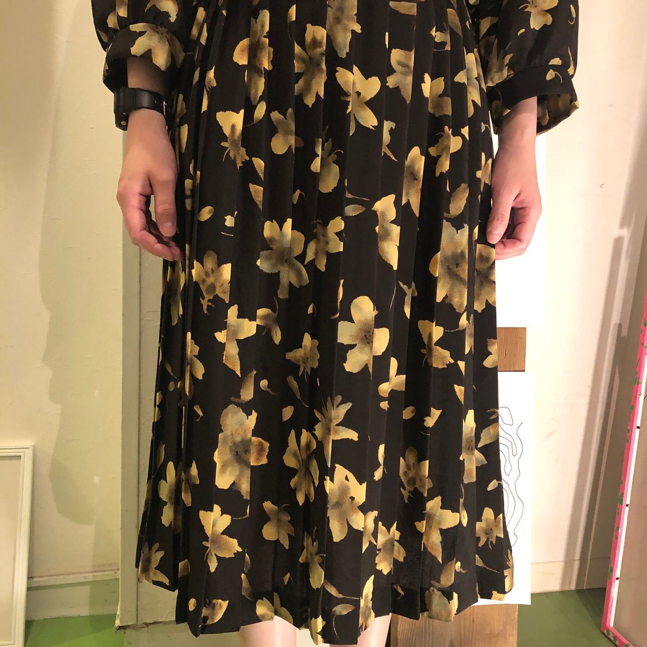 ブラックベースに花柄、シアーな素材感が重くなりすぎない雰囲気のワンピース♡