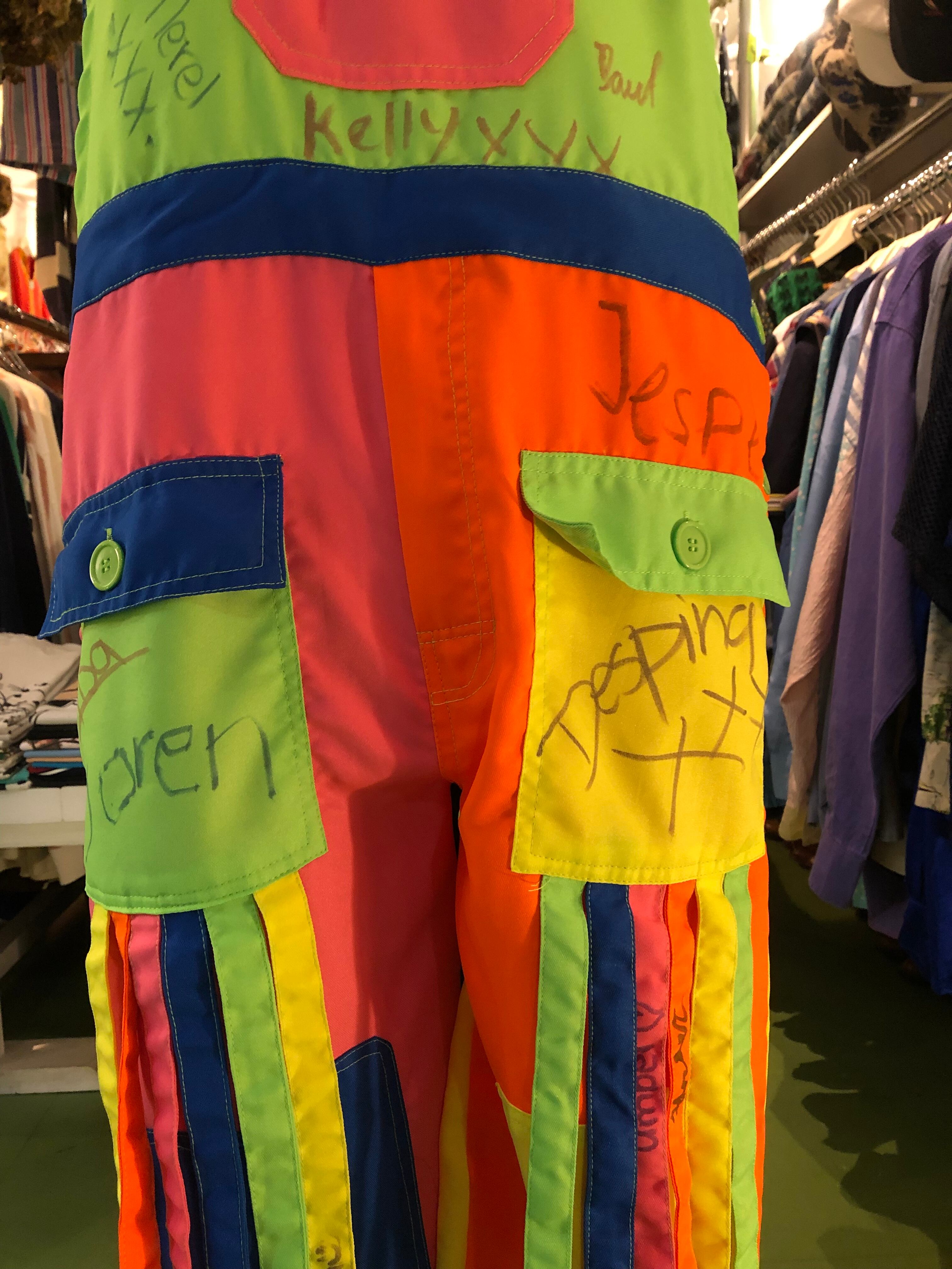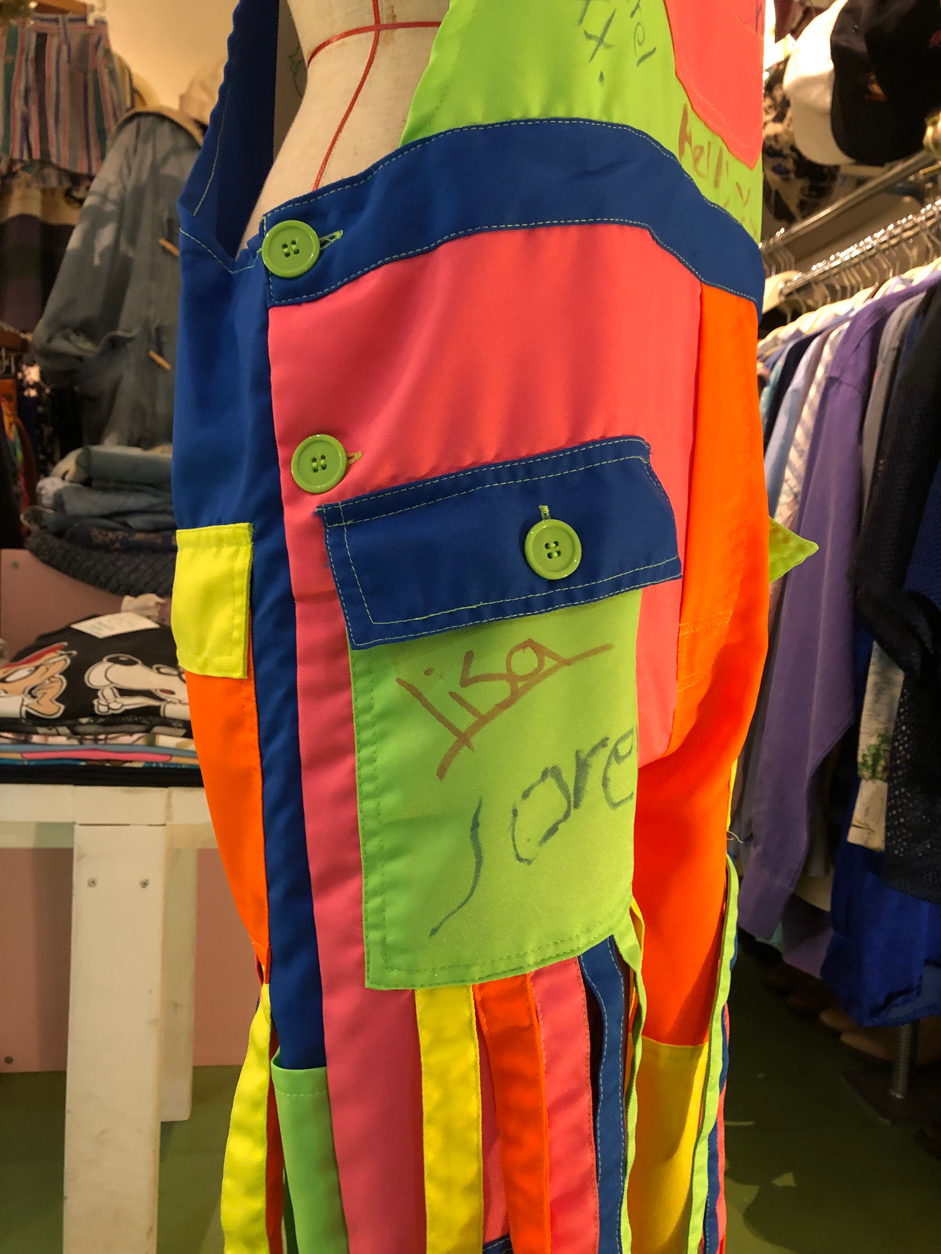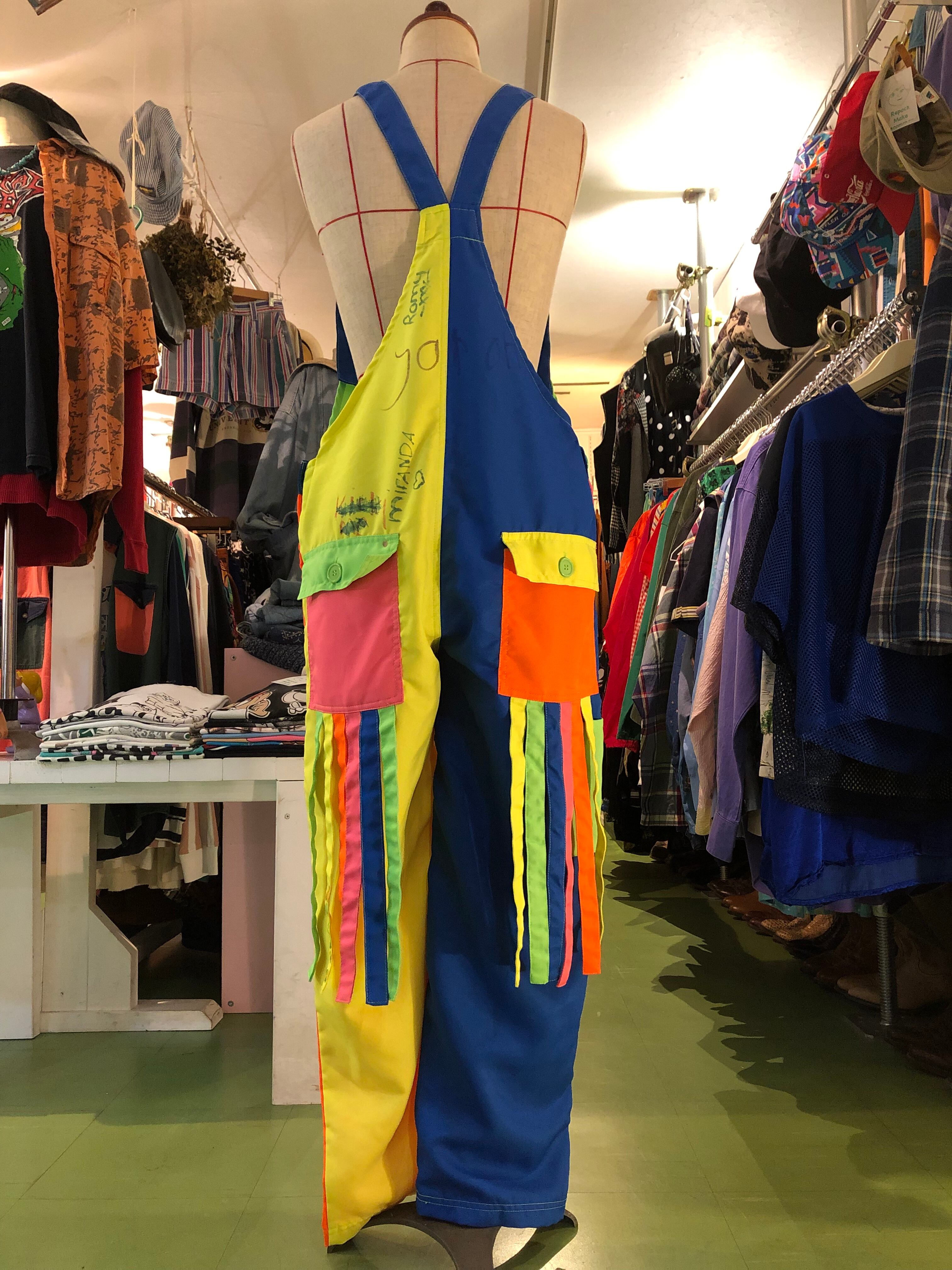 マルチなネオンカラーのクレイジーパターンに、色々なサイン?がラクガキされた、メモリアル的なオーバーオール♡