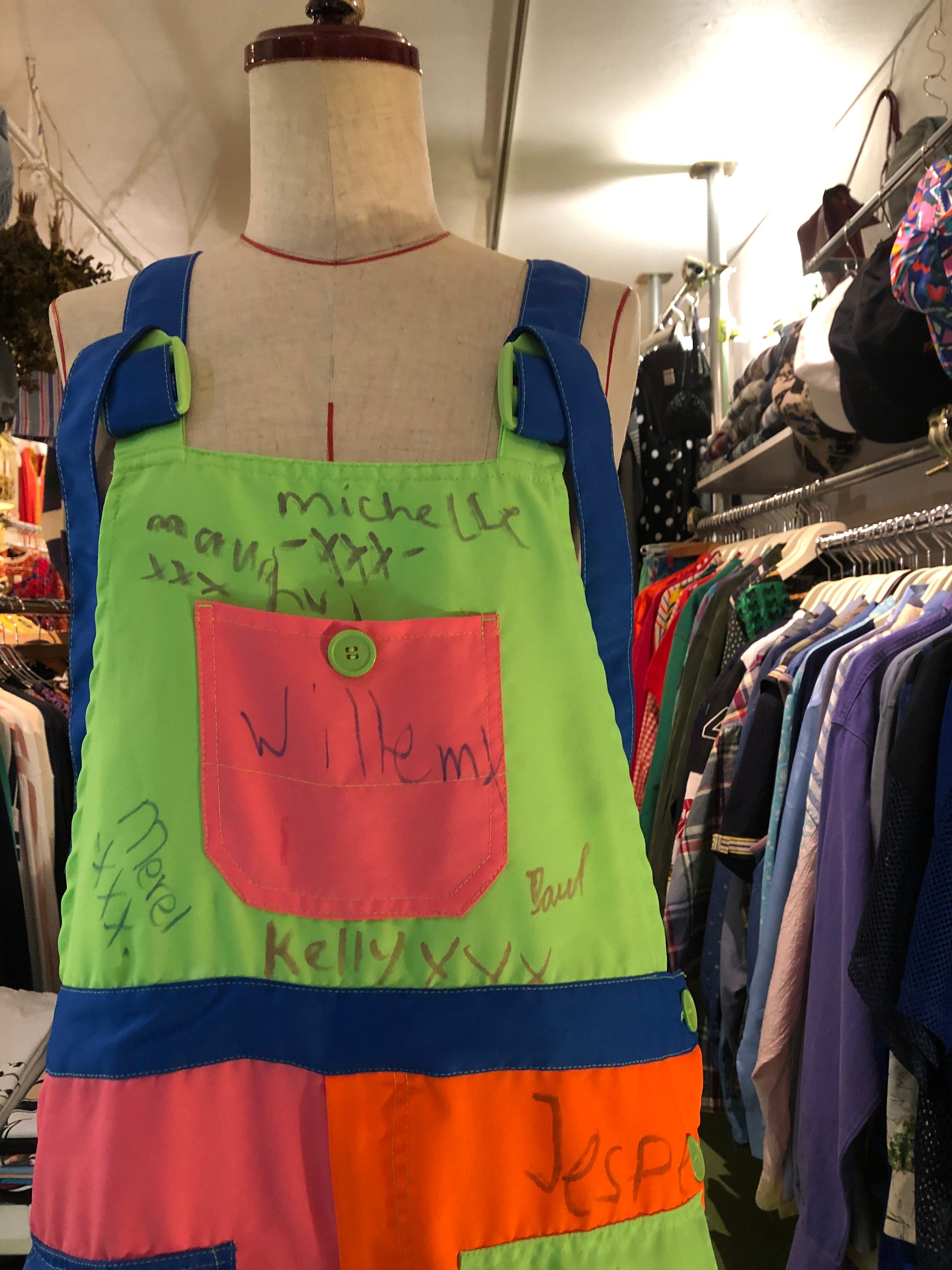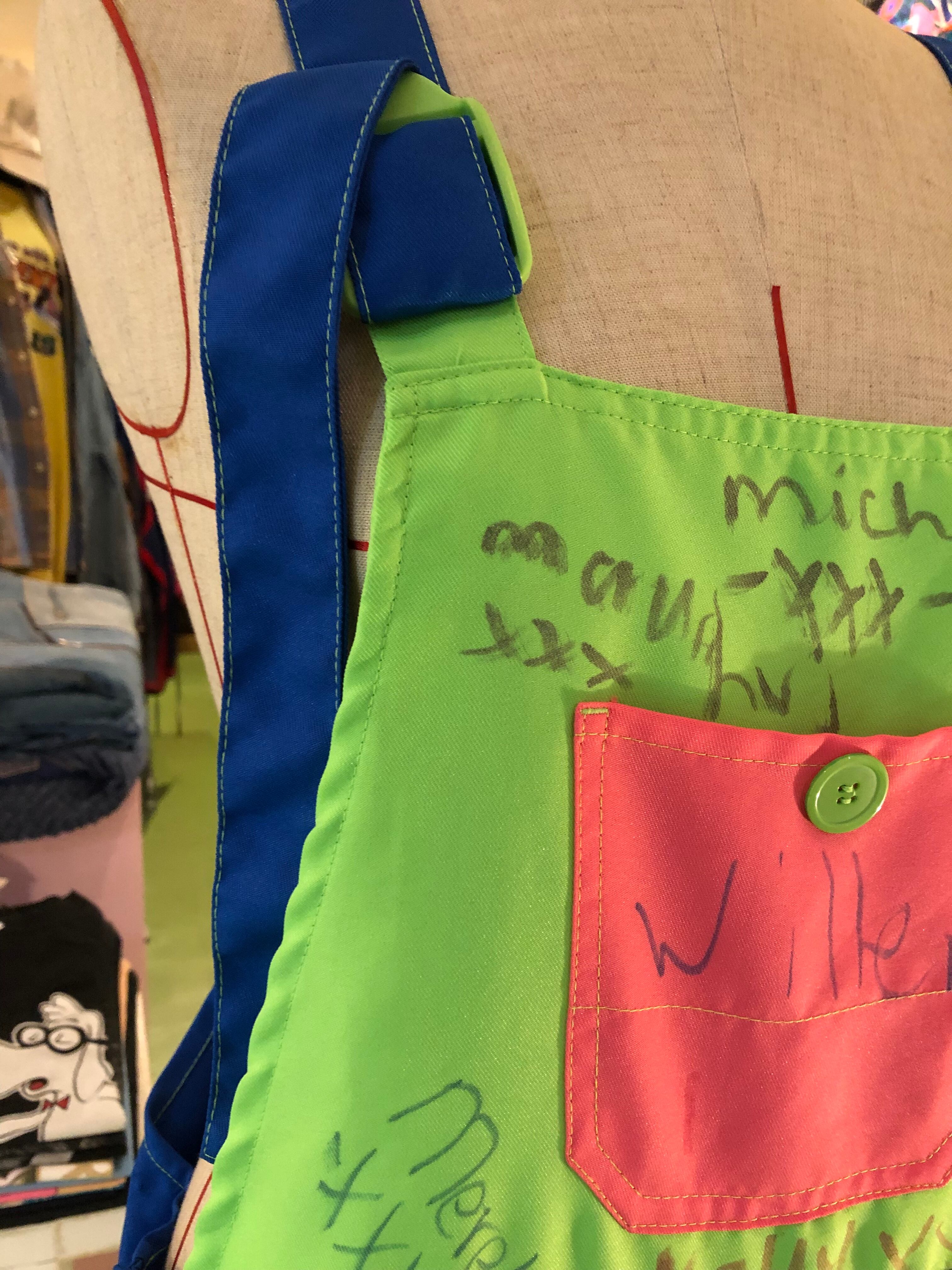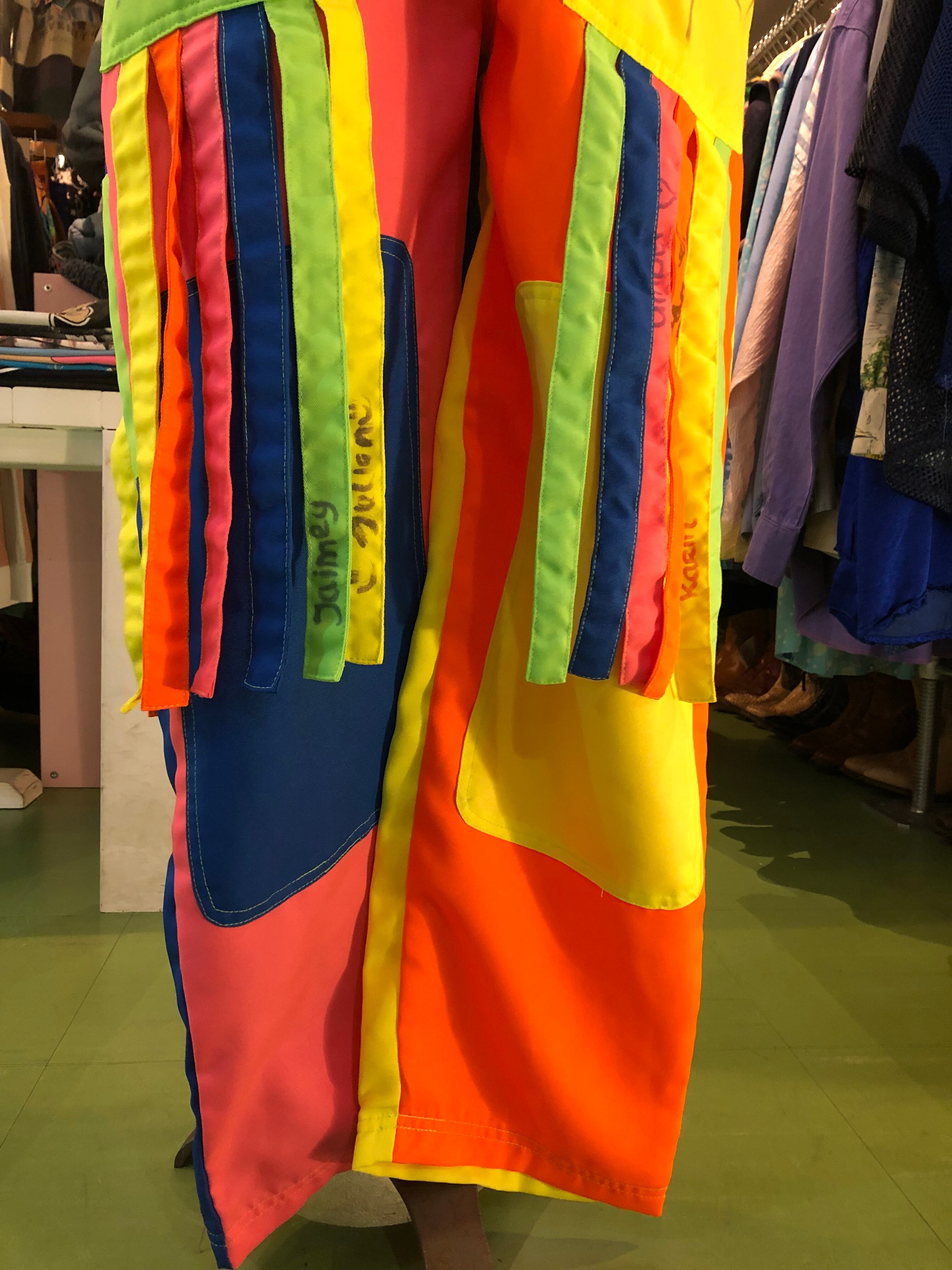 マルチなネオンカラーのクレイジーパターンに、色々なサイン?がラクガキされた、メモリアル的なオーバーオール♡