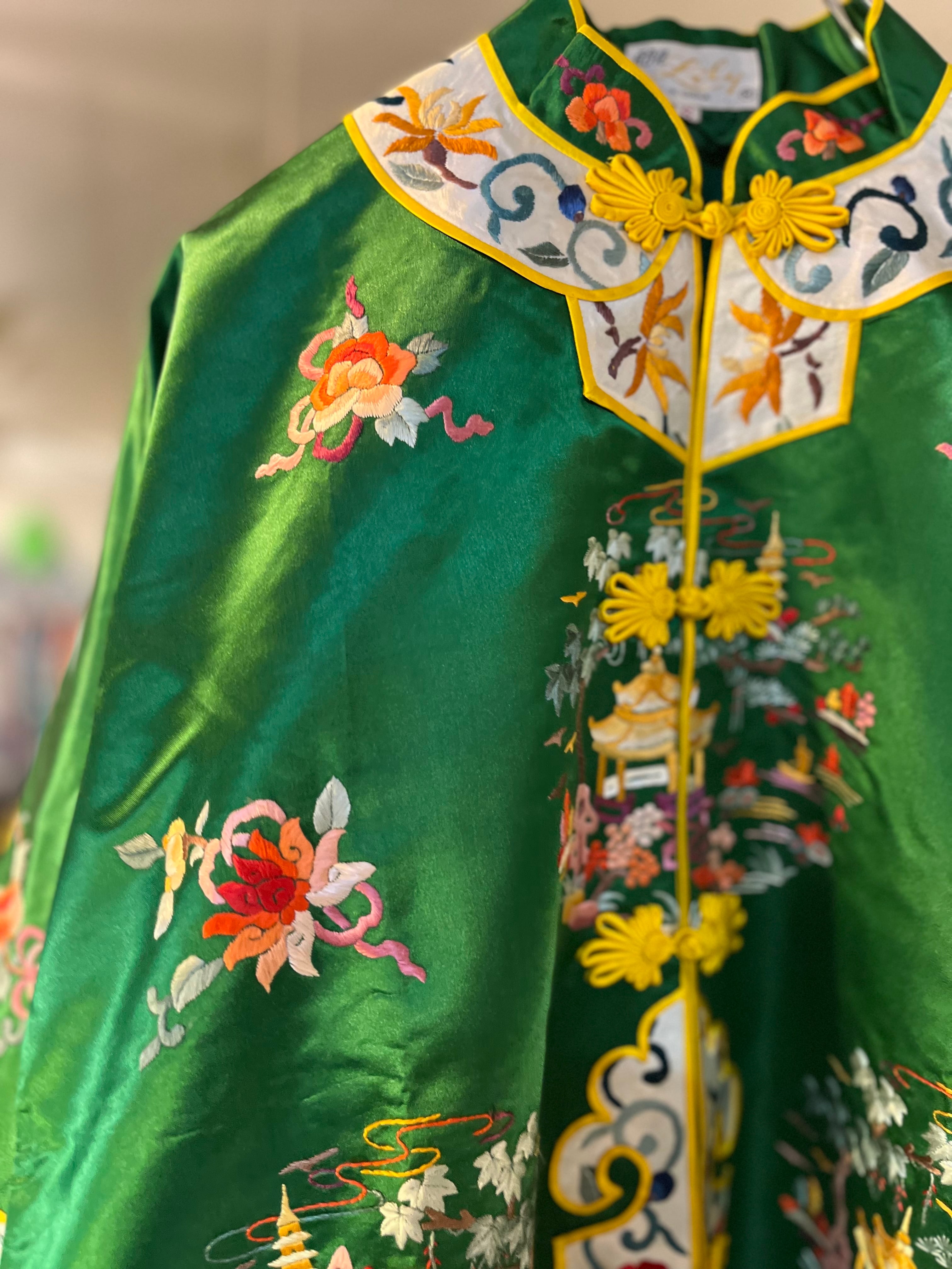 鮮やかなグリーンカラーに全体的に施された刺繍が最高にcool!!