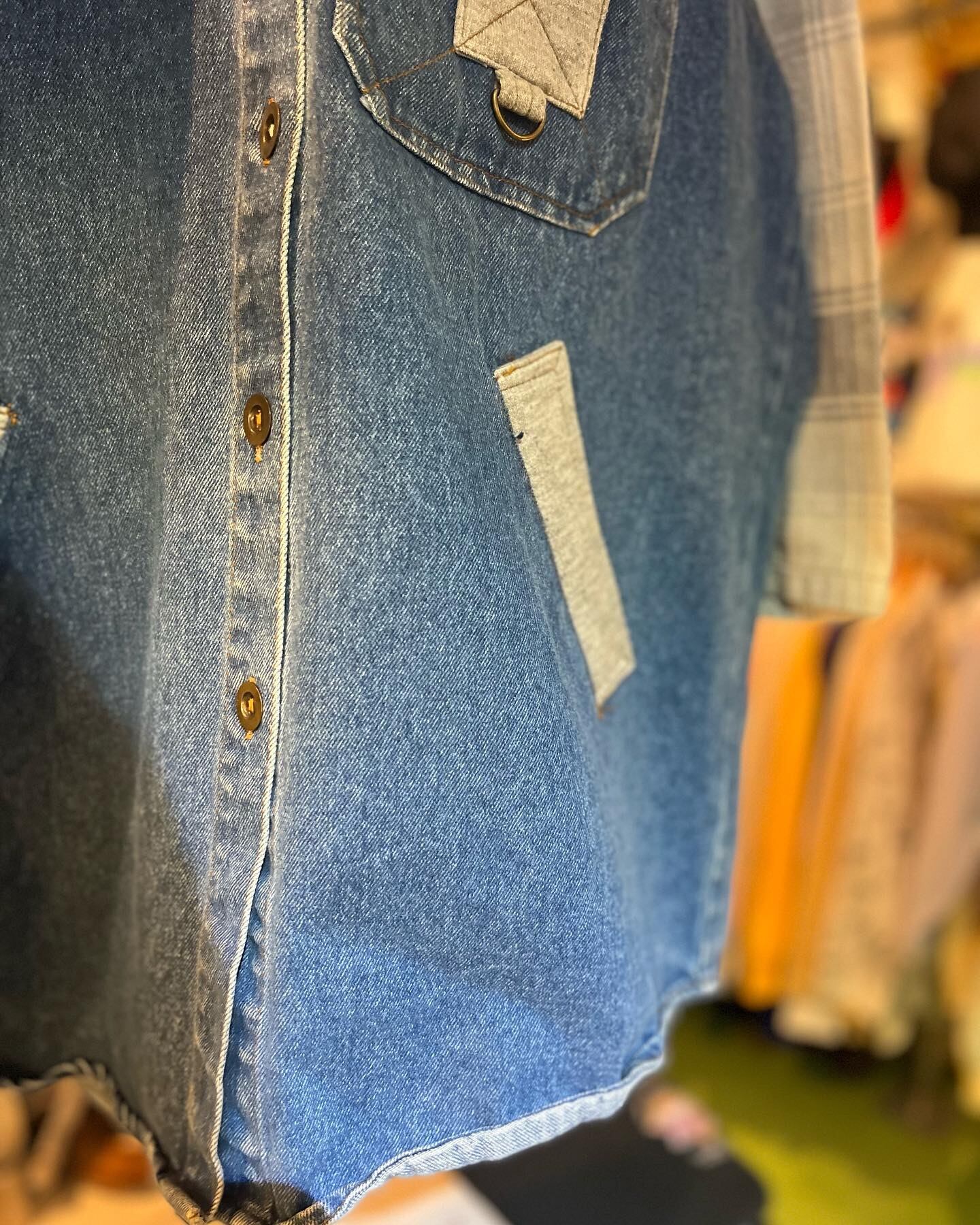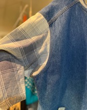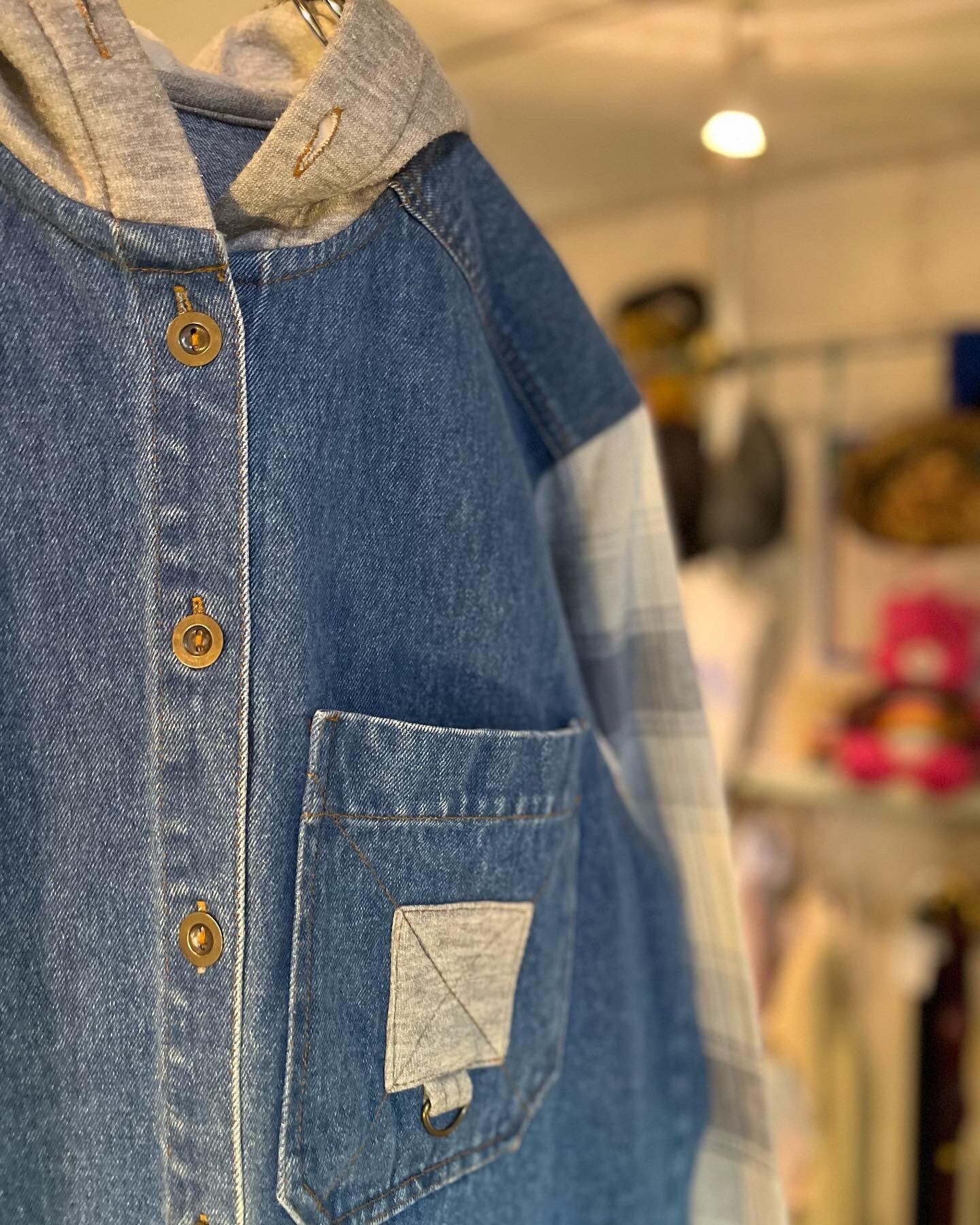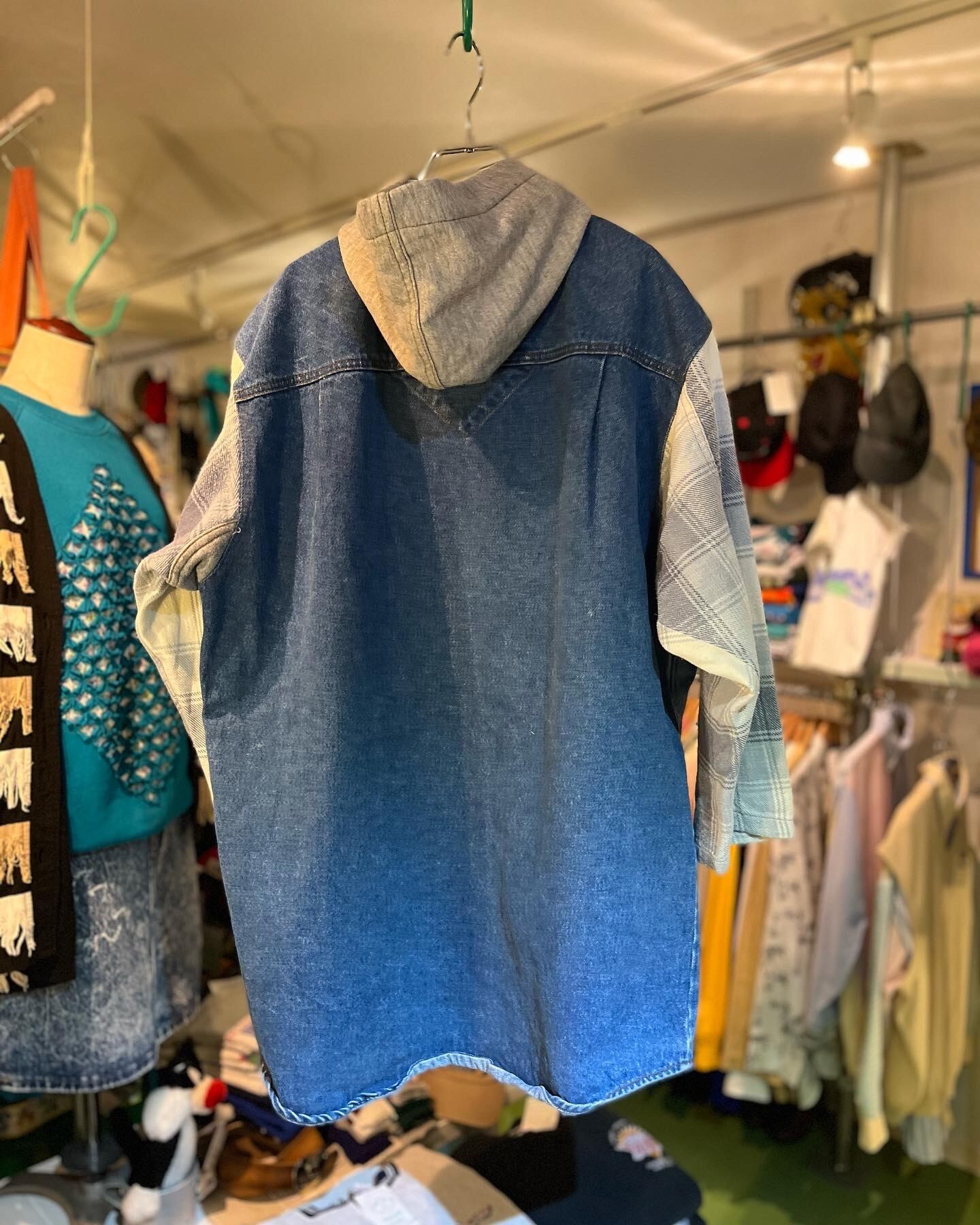90sらしいデニムベースにフード付きで袖スウィッチングデザインが、しっかりストリートしてるデニムジャケット♡
