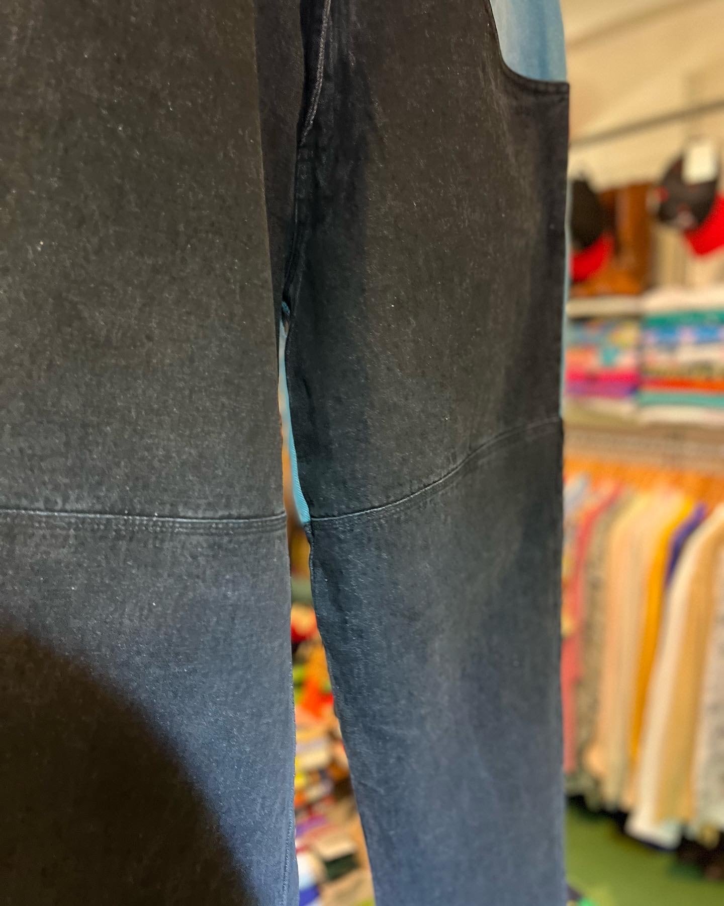 90s レッドイレイサーの、ブラックベースにターコイズカラーの切り替えデザインがgoodな、2トーンカラーのワイドパンツ♡